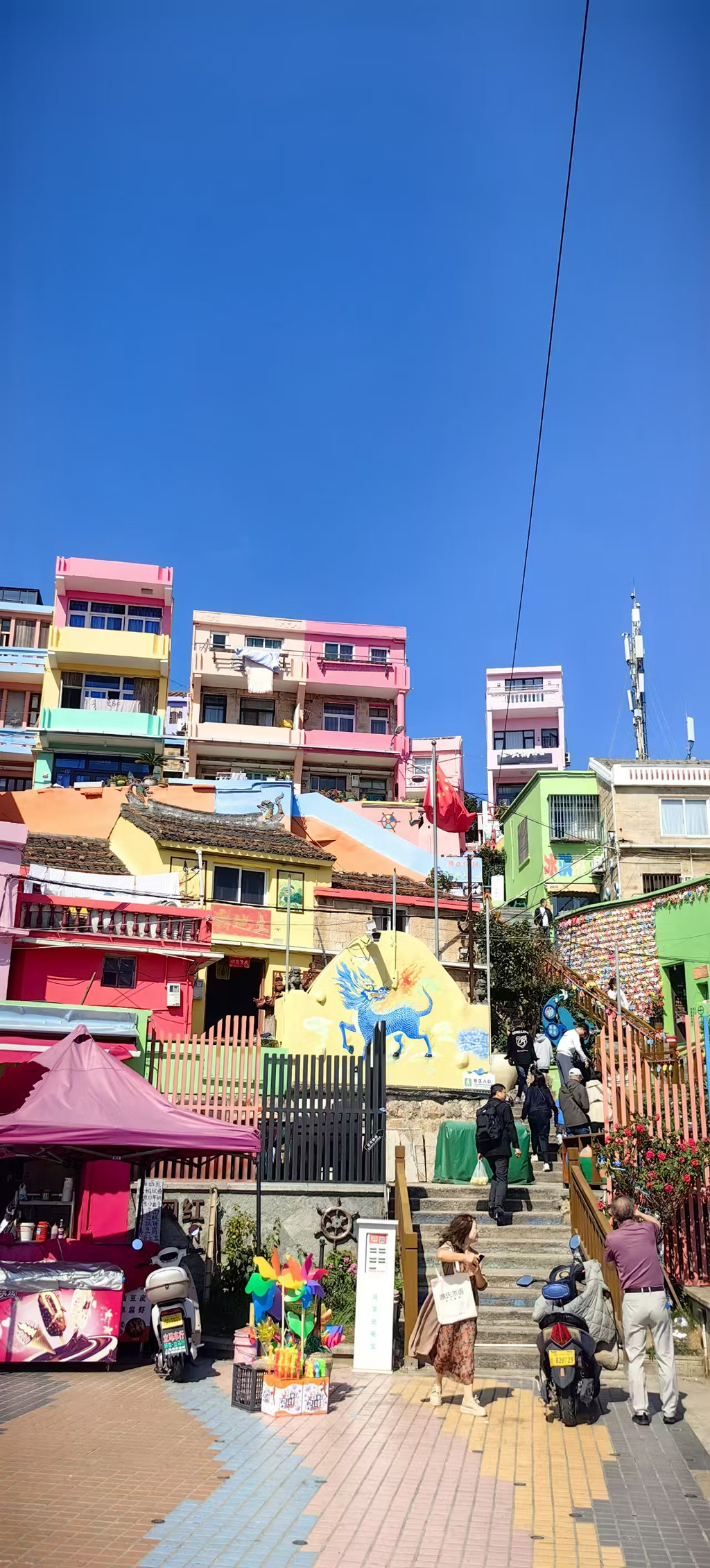 一早从温岭打车前往小箬村(车程约0.6小时),这个被称为“七彩渔村”的地方简直是摄影天堂!五彩斑斓的房子错落有致,背景是湛蓝的海港,随便一拍都是明信片效果。中午在石塘镇的海鲜楼大快朵颐,点了岩蒜炒年糕、鳗鱼羹和清蒸梭子蟹,海鲜新鲜到仿佛刚从海里跳上桌!