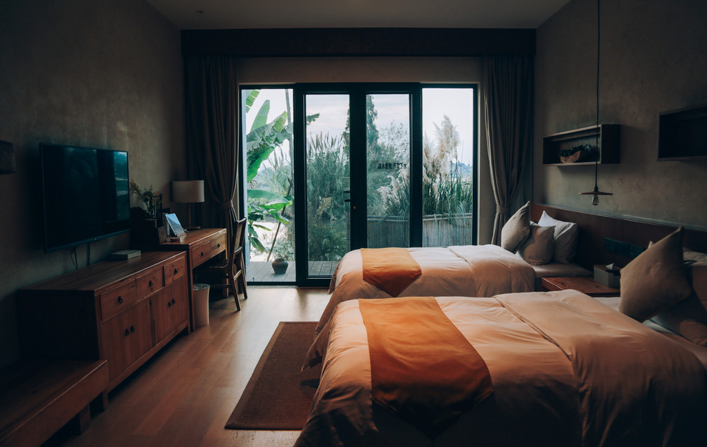 躺在床上就能欣赏到周边的风光,悠哉惬意。