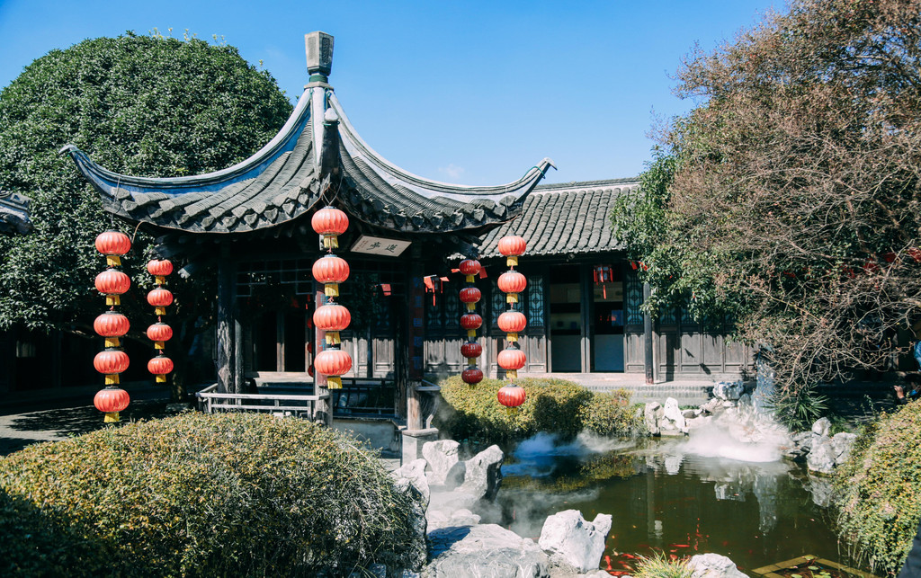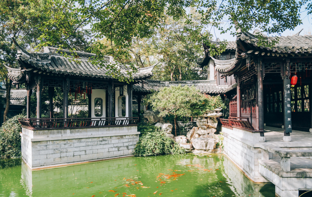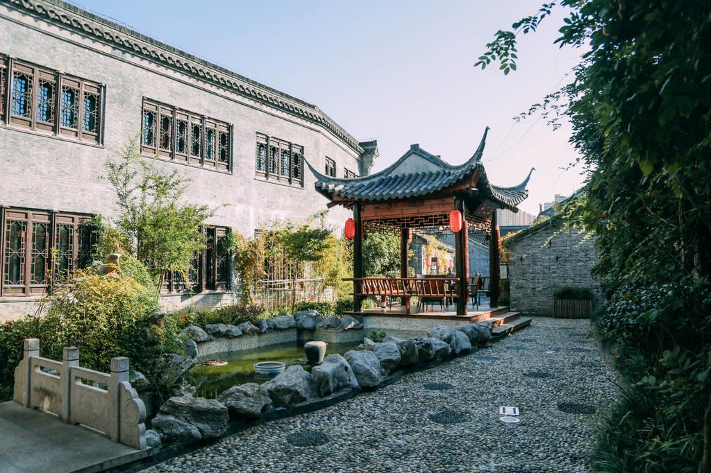 这里时而假山流水潺潺,时而堆砌高低林立;园中池塘,时而水波清浅,时而锦鲤跳跃满是涟漪;亭台楼阁时而古朴典雅,又时而能带你入梦。