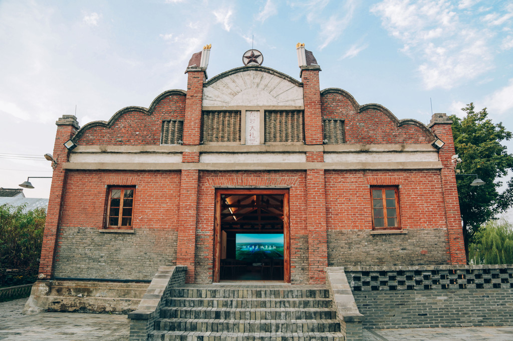 东罗村的大礼堂,是由当年的老庙改建而成,最早建于1953年。大礼堂正面上方,雕刻着五星红旗,太阳光芒和三面红旗,非常具有年代感。