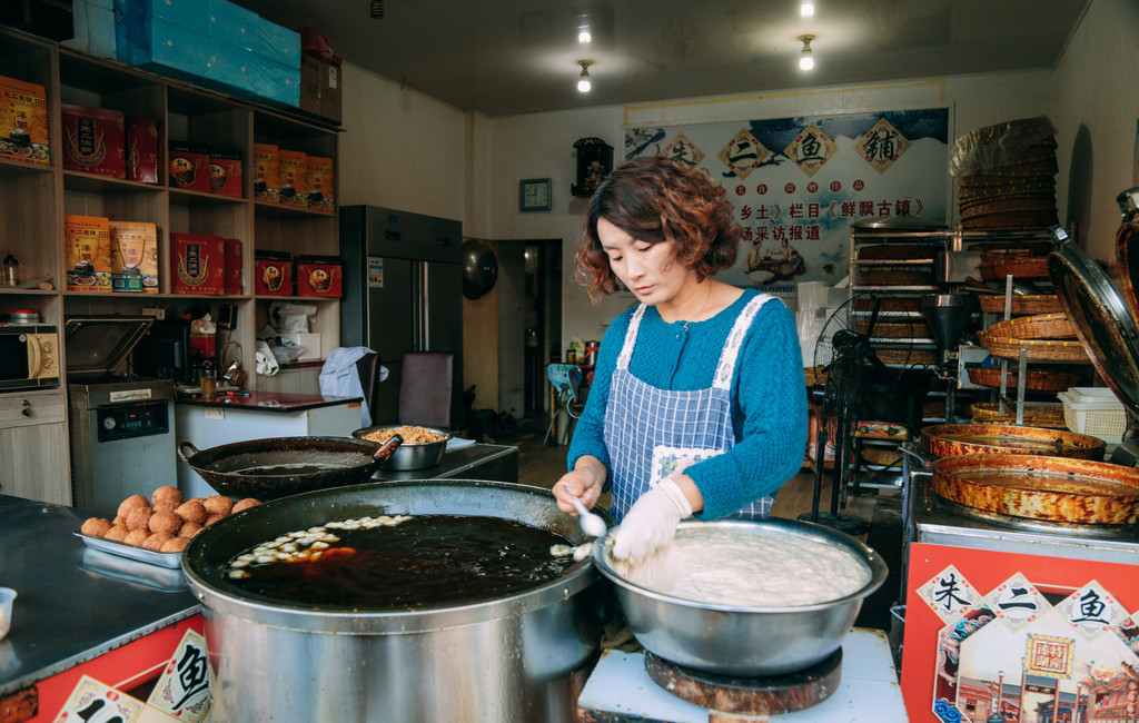 古镇里售卖的东西,也尽数是当地特产,因为这里四面临水,是典型的鱼米之乡,所以这里的鱼虾物产丰富,当地人就很喜欢把这些加工成鱼丸虾饼等物,游客来了也可以买一些带回去。