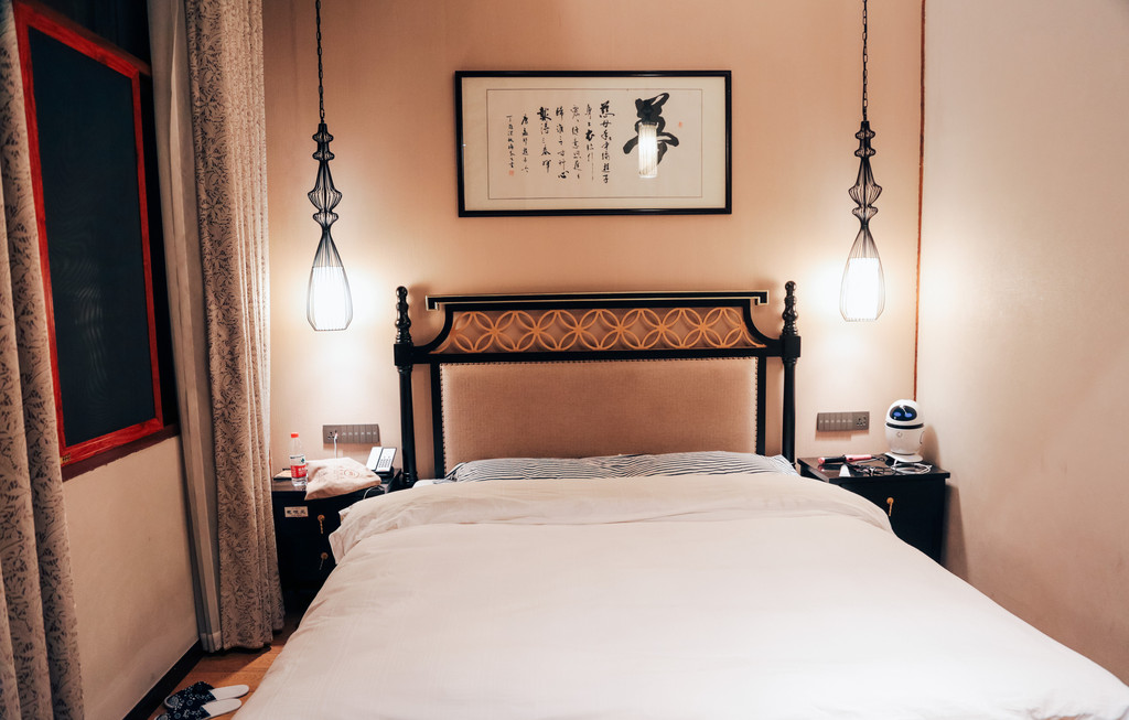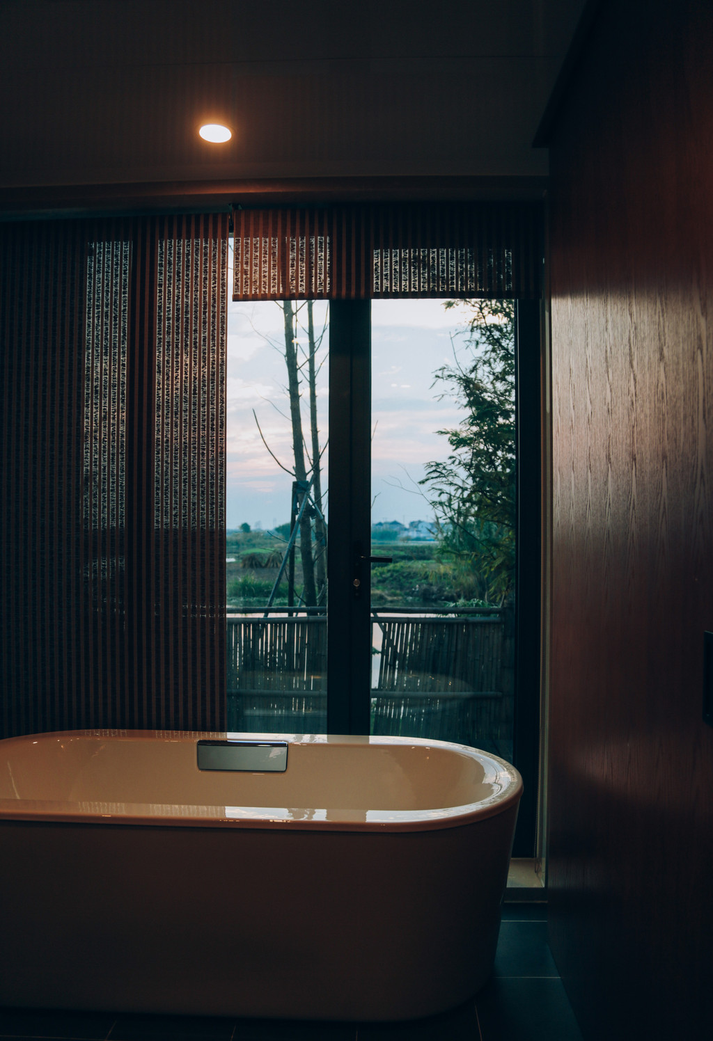 简单参观了一下民宿的房间,房间很有特色,干净整洁。有的房间还有配浴缸,在大大的落地窗面前,正对着院外湖泊田野。