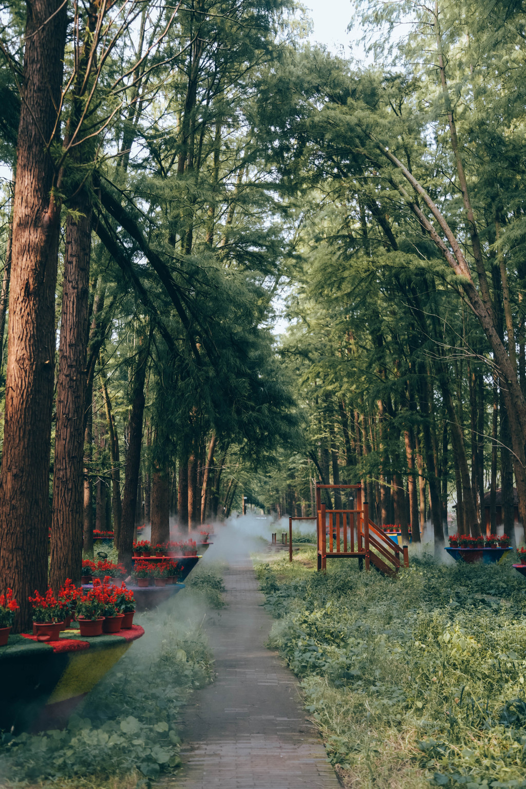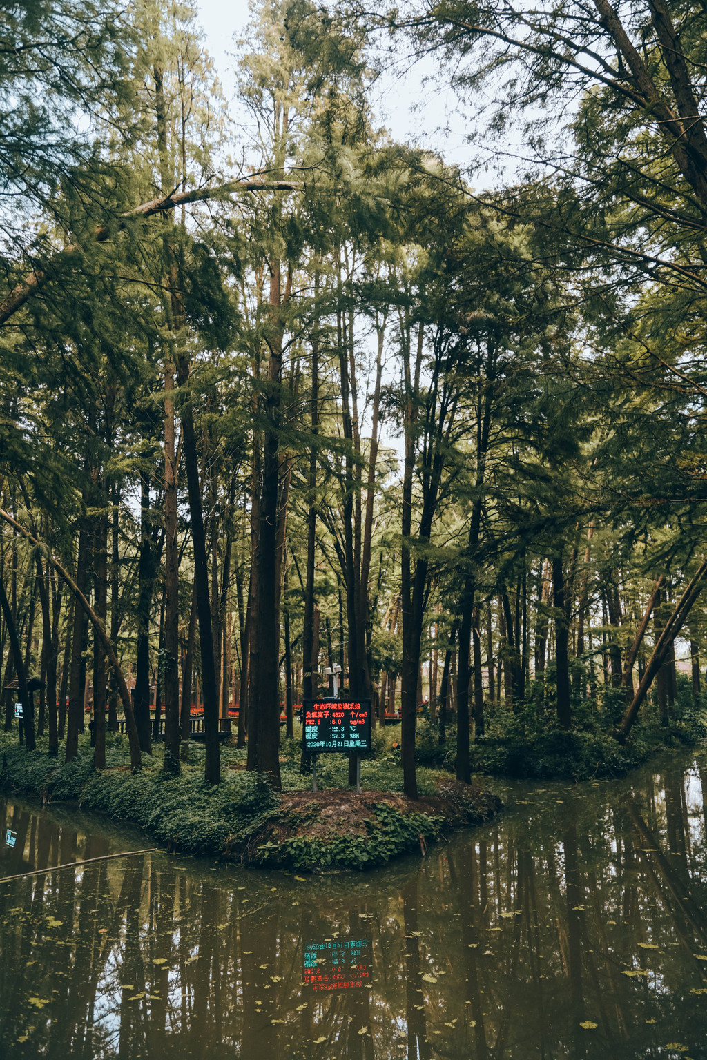 漫步其中,水杉高耸,笔直的杆郁郁葱葱。