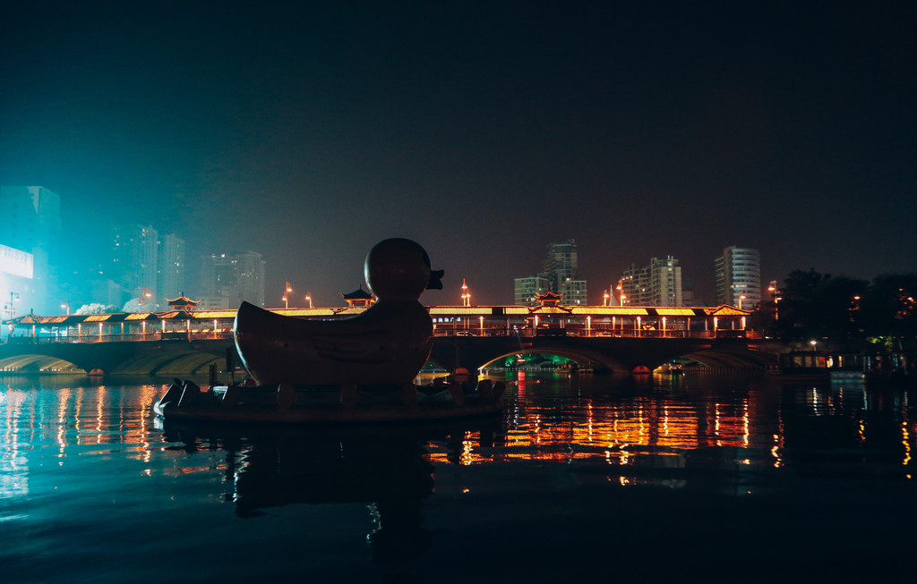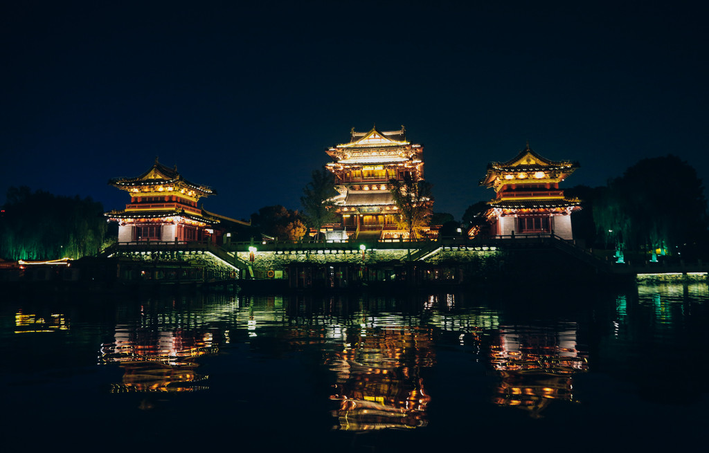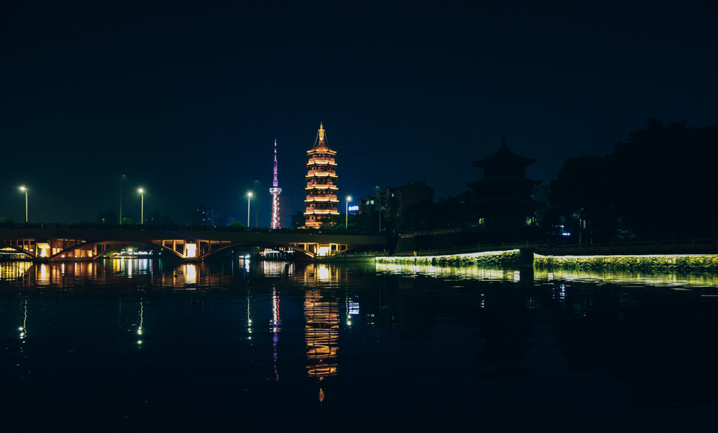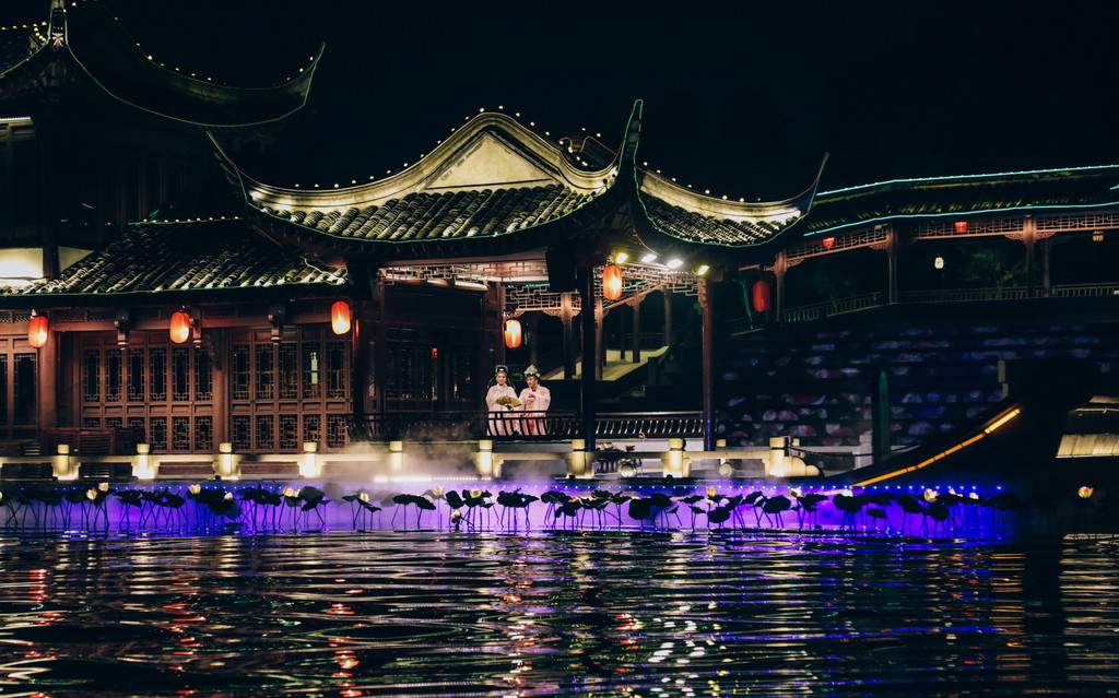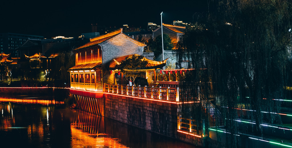 夜游凤城河,灯红酒绿,戏剧在耳边回荡。