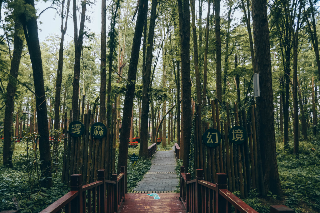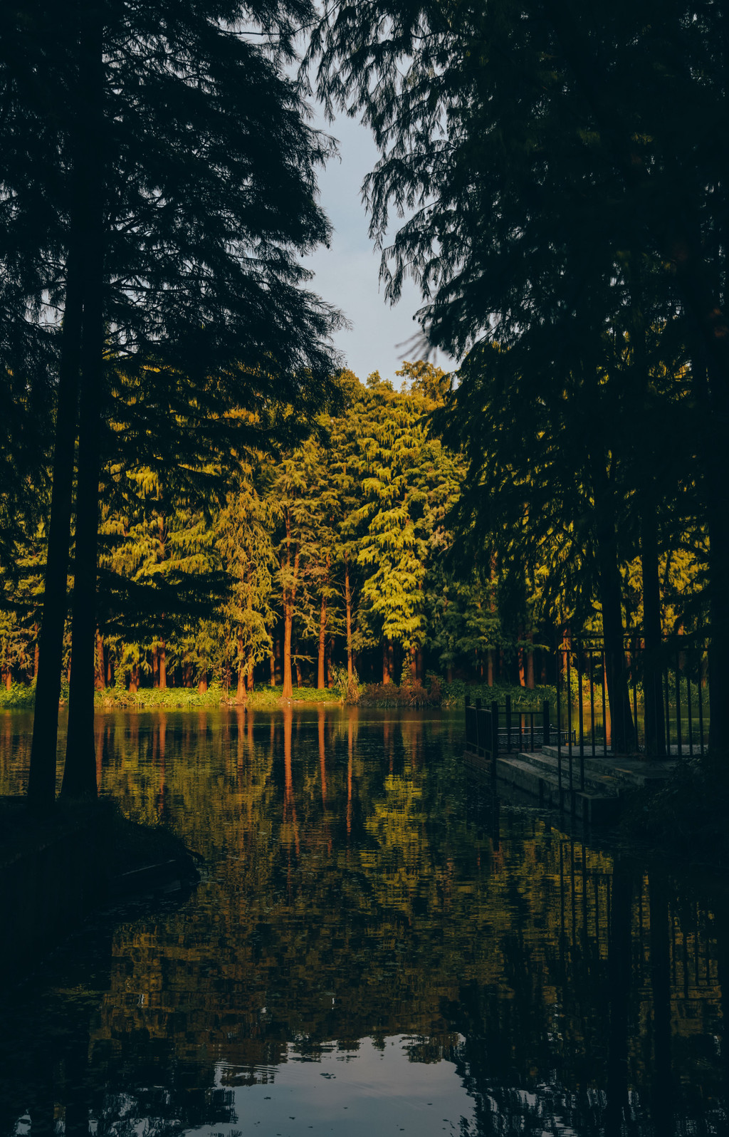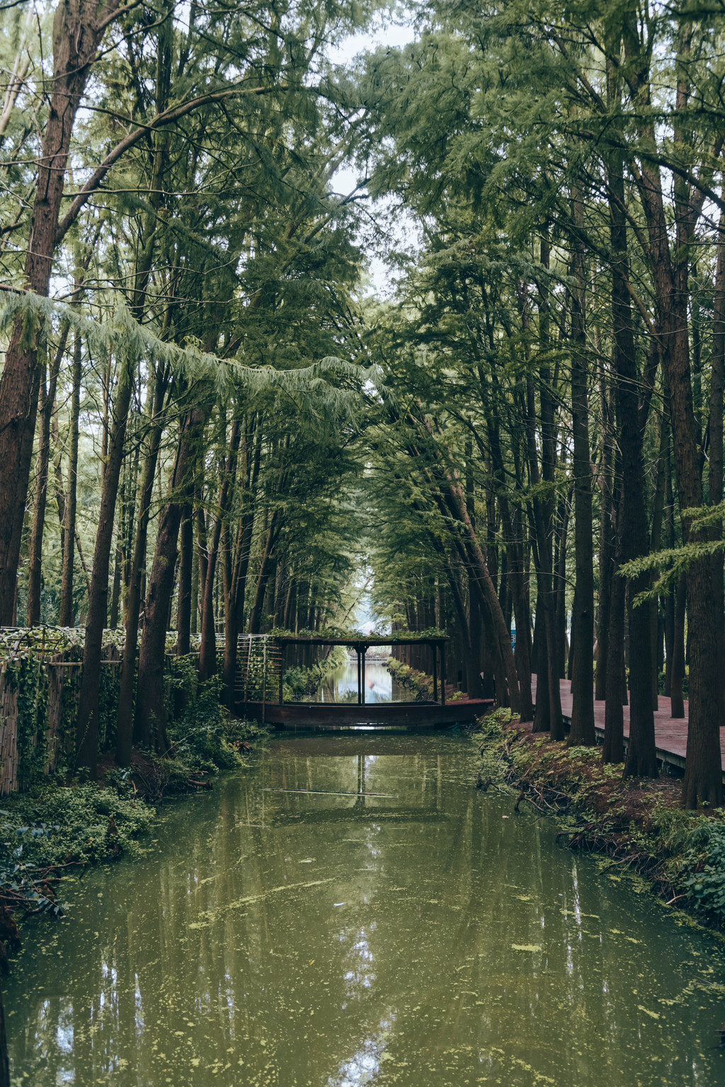 穿行于这一棵棵高大的树间,穿过小桥,划破倒影,直达遇见开阔的“远方”。