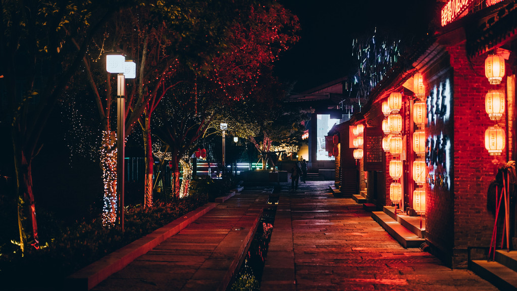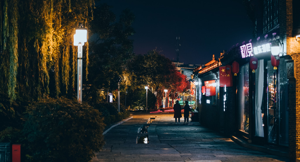 老街的灯光亮了起来,时不时便能碰到三三两两的游人。