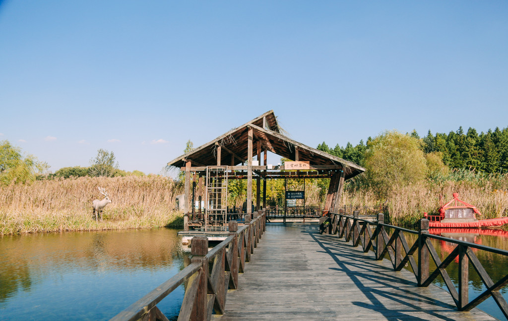 又一次见到了这个在湖中专门做的一只麋鹿造型的塑像了。据说在溱湖景区里还可以看见麋鹿,如果运气好的话还能看见丹顶鹤。