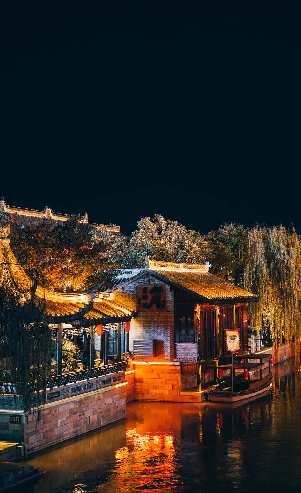 凤城河夜游一直被说做是泰州旅游的精华,这里也一度被称之为“水天堂、夜游城”,夜色中,这里的美有些朦胧,再有灯光的加持,乘画舫夜游,喝一杯清茶,听一段戏曲,随着船一起欣赏。