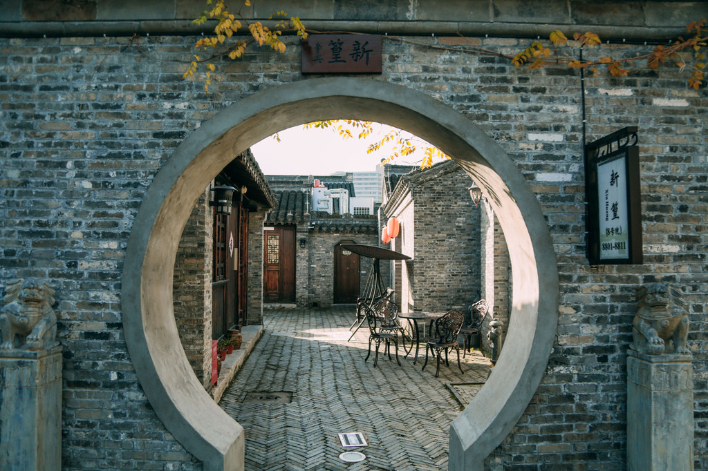 透过圆拱门,我突然就感觉这里很有北京四合院的味道。