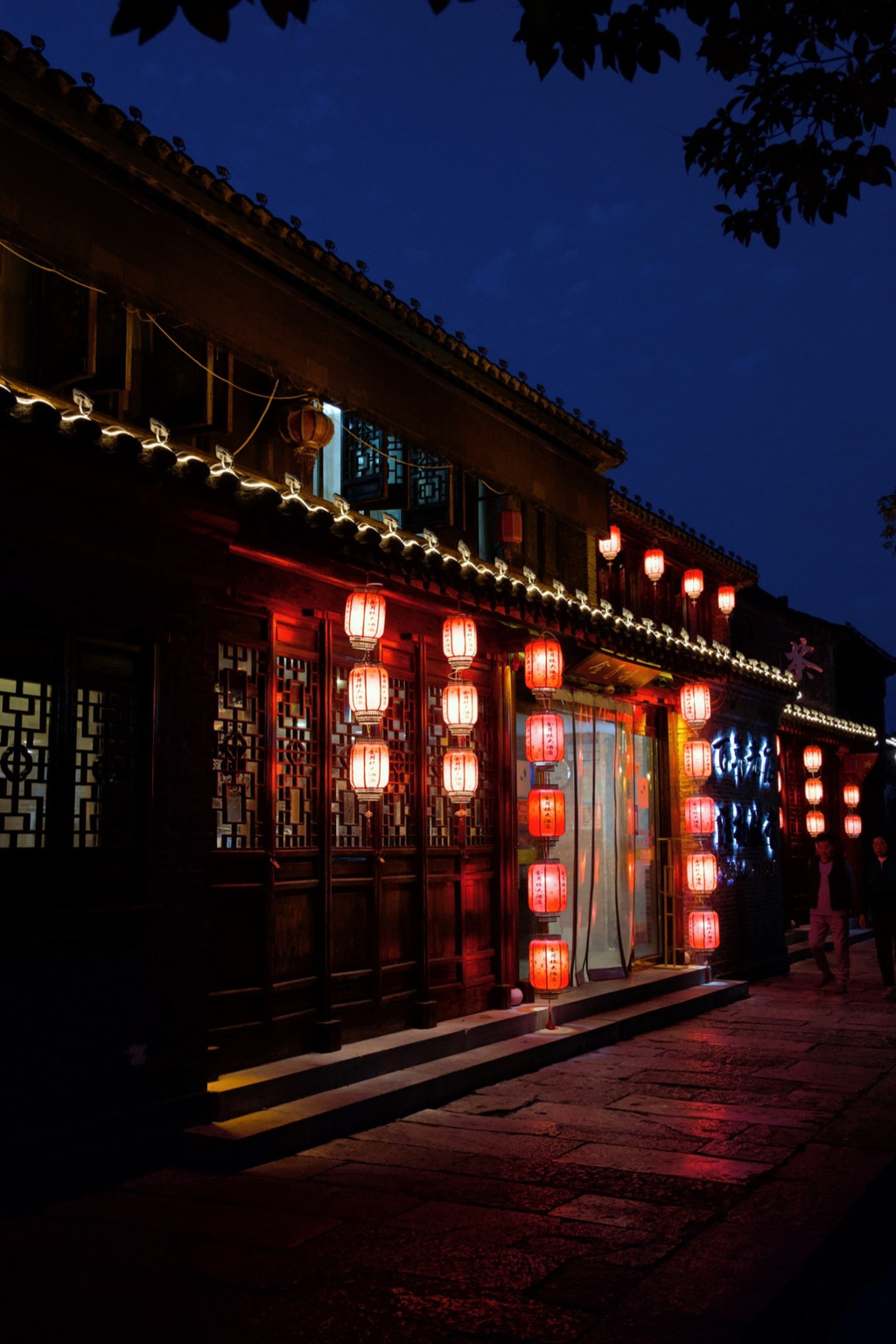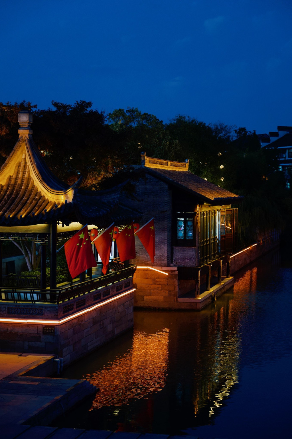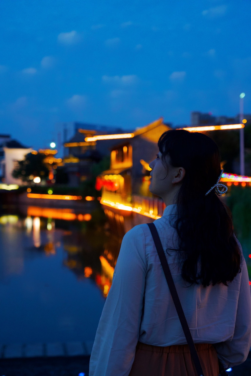 我最喜欢天刚黑时候的古镇,暖黄色的灯光和普蓝色的天空,冷暖呼应。