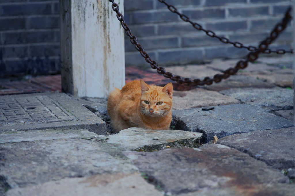 找到一只揣着手手的小猫咪,每天看游客人来人往,一点都不怕人。