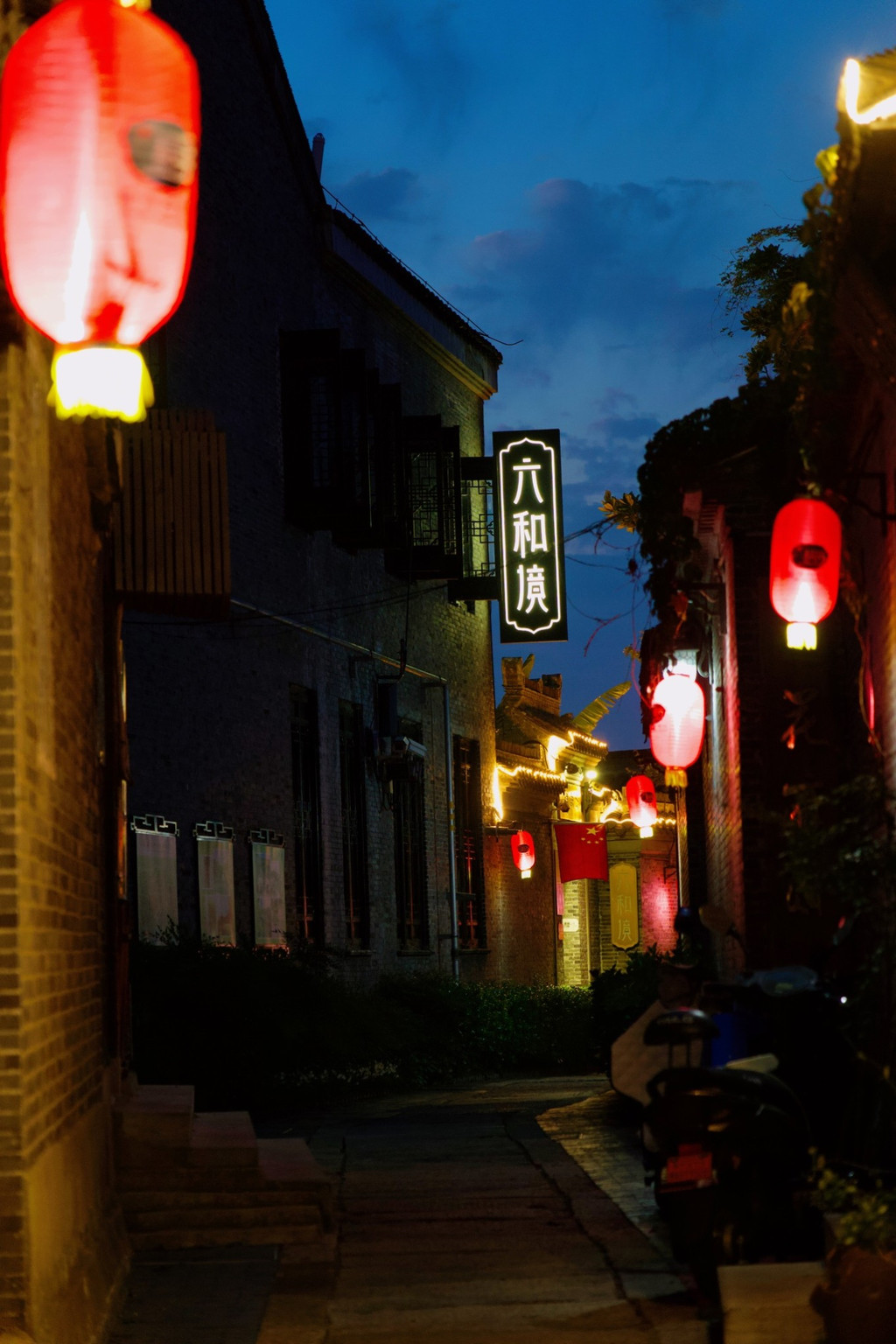 在这里随处可以见到江南四大民居建筑之一的泰式建筑,我们一直笑称这里是泰式建筑的大观园。老街的灯光亮了起来,时不时便能碰到三三两两的游人。