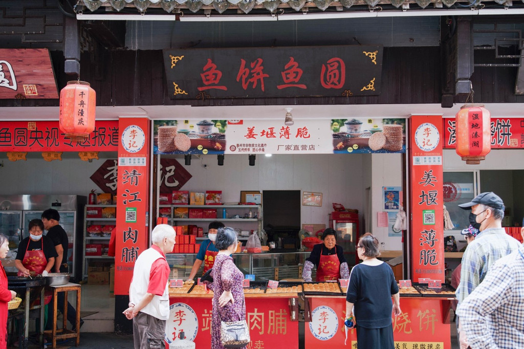 溱潼古镇,位于泰州市姜堰区溱潼镇,距今已有上千年的历史,这里的一砖一瓦,这里的旧日宅院都有着从前的味道,在静静的诉说着之前的故事。古镇并不算很大,最外侧的一条老街,是这里满满的烟火气。临近中午到这里,这条街也已热闹了起来,旅游团带来了人头攒动,商贩们也在卖力的吆喝着。