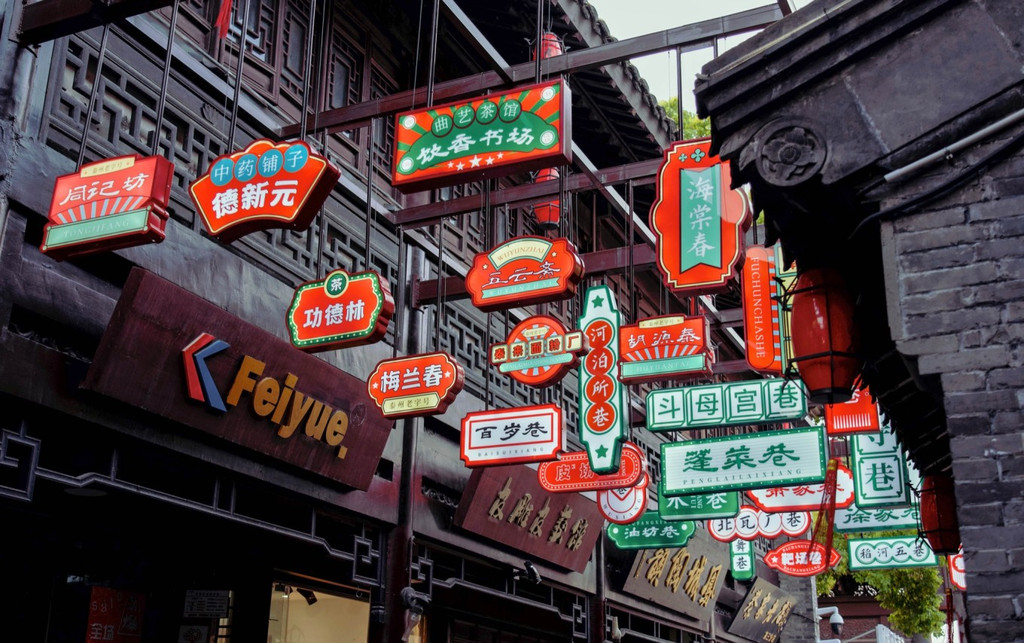 和很多古镇老街一样,顶上也吊满了当地地点的牌子。