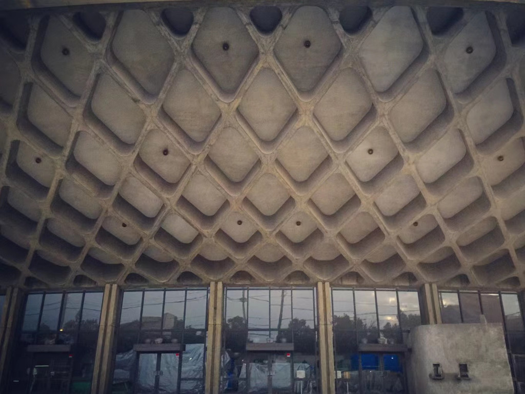 另一座香川县立体育馆是丹下建三载1962—1964年设计的,一起去的小伙伴说这个是参照武士帽子做的,但我怎么都觉的像条鱼。