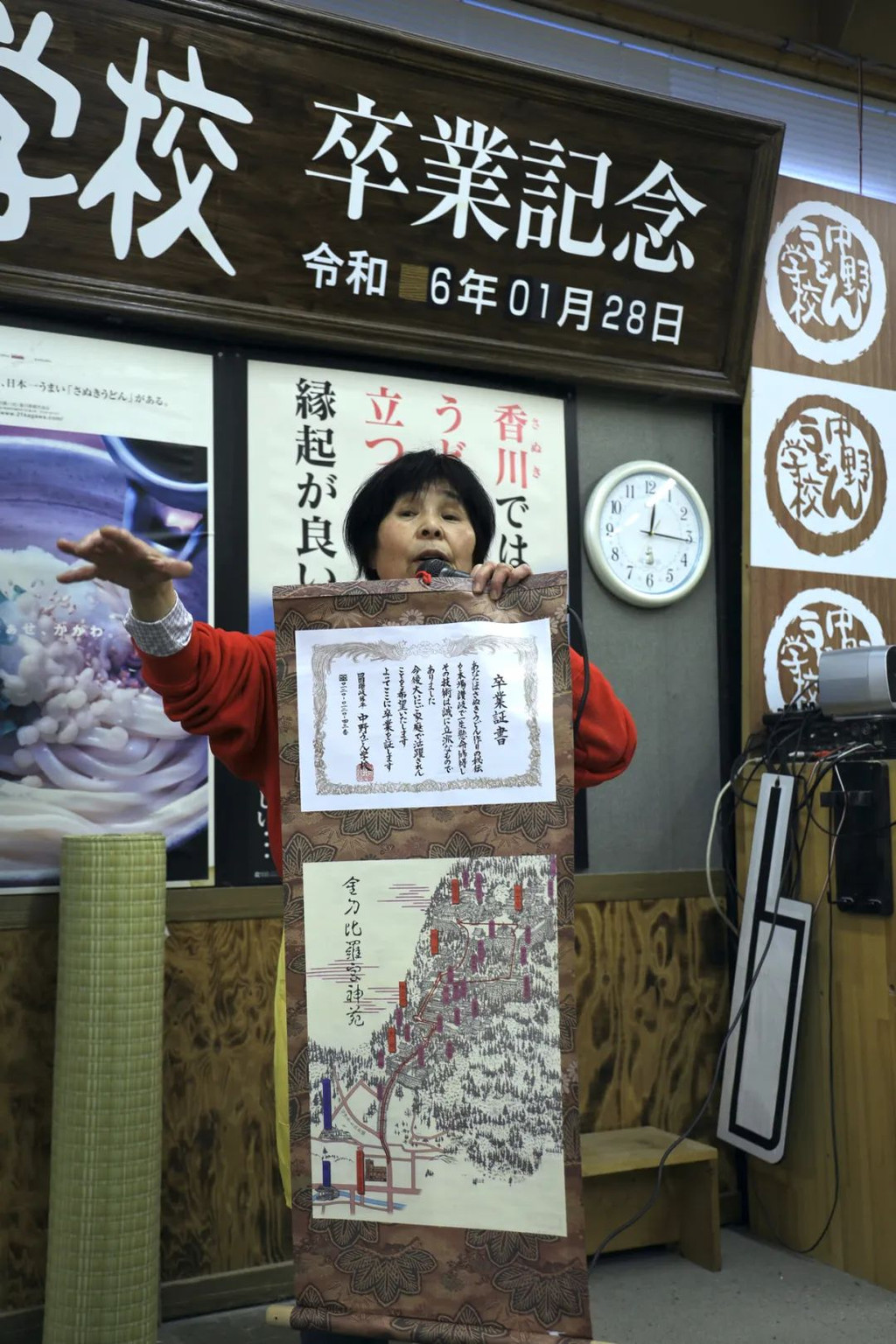 图片看到我们既认真学做乌冬,也卖力地跳舞,还做出了合格的面条(我自己给自己💯),课程结束后老师给我们每人颁发了“毕业证书”,是包含了擀面杖、毕业证书、古地图融为一体的精美挂轴哦~~哈哈,新的人生技能点又get到了!