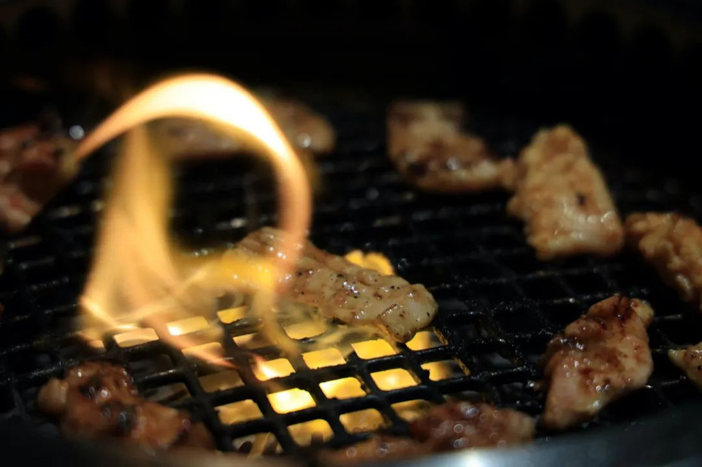🐂诱人的鲜和牛肉,伴着滋滋声,渐渐变色,肉香扑鼻而来,以手中的烤肉夹将肉铺排、反转,烟火气和仪式感都拉满了!
