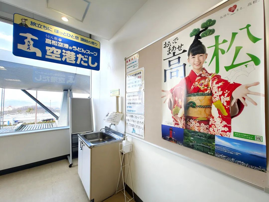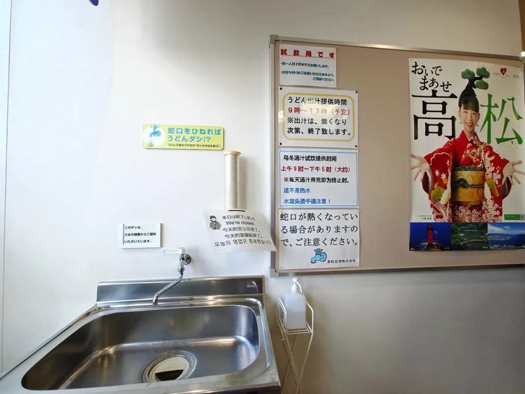 高松国际机场小彩蛋:候机室设有高松乌冬汤汁试饮区,打开水龙头试试吧~