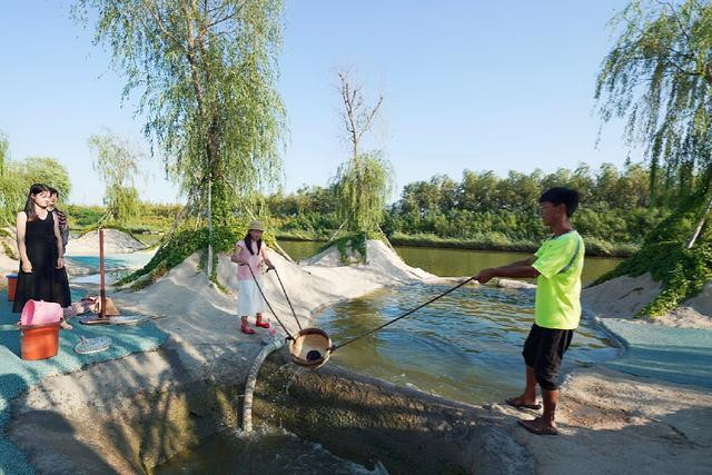 起捉鱼,方法真是多到数不胜数。古人总说“临渊羡鱼,不如退而结网”,但是在多玛乐园里,不用羡鱼,不用结网,咱把水舀干鱼就上来啦。这个玩法怎么样?算不算让鱼儿自投罗网?先将鱼集中赶过来,再进行围堵,将水池里的水舀干。当然这个玩法需要俩人配合协调,亲子、情侣在这个游戏更能体会到齐心协力。