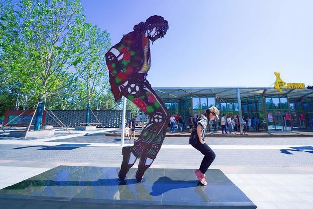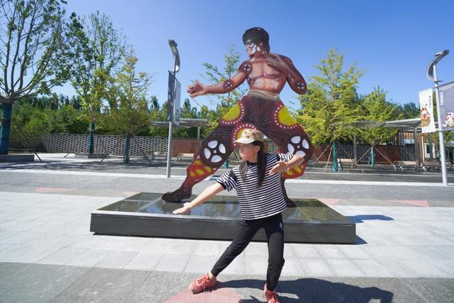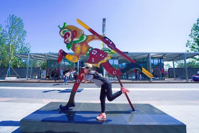 带孩子来唐山,一定要去唐山皮影主题乐园,还没有进园,女儿已经被景区外的这些皮影雕像吸引了,每个动作都要模仿一遍,致敬经典皮影。