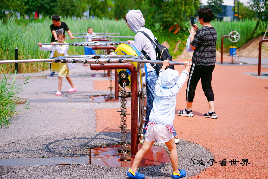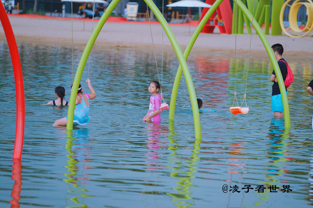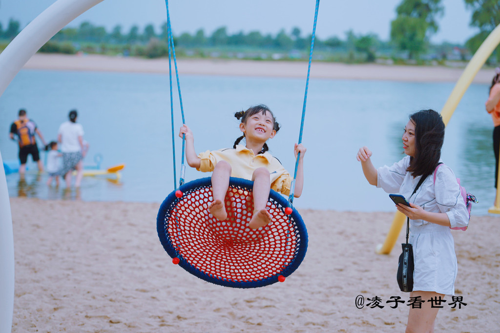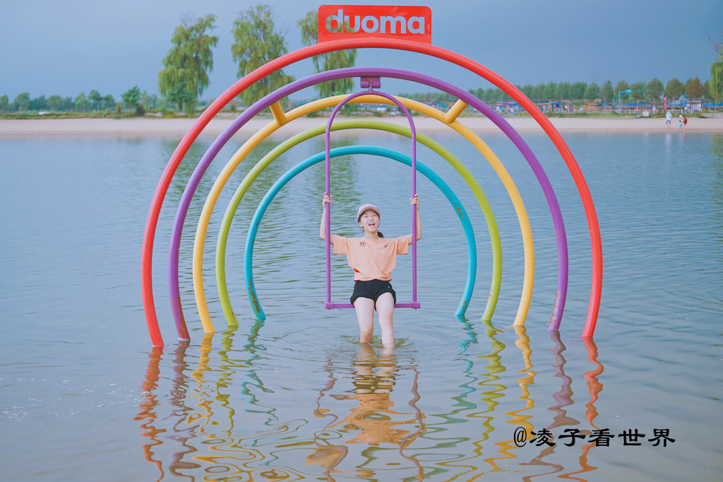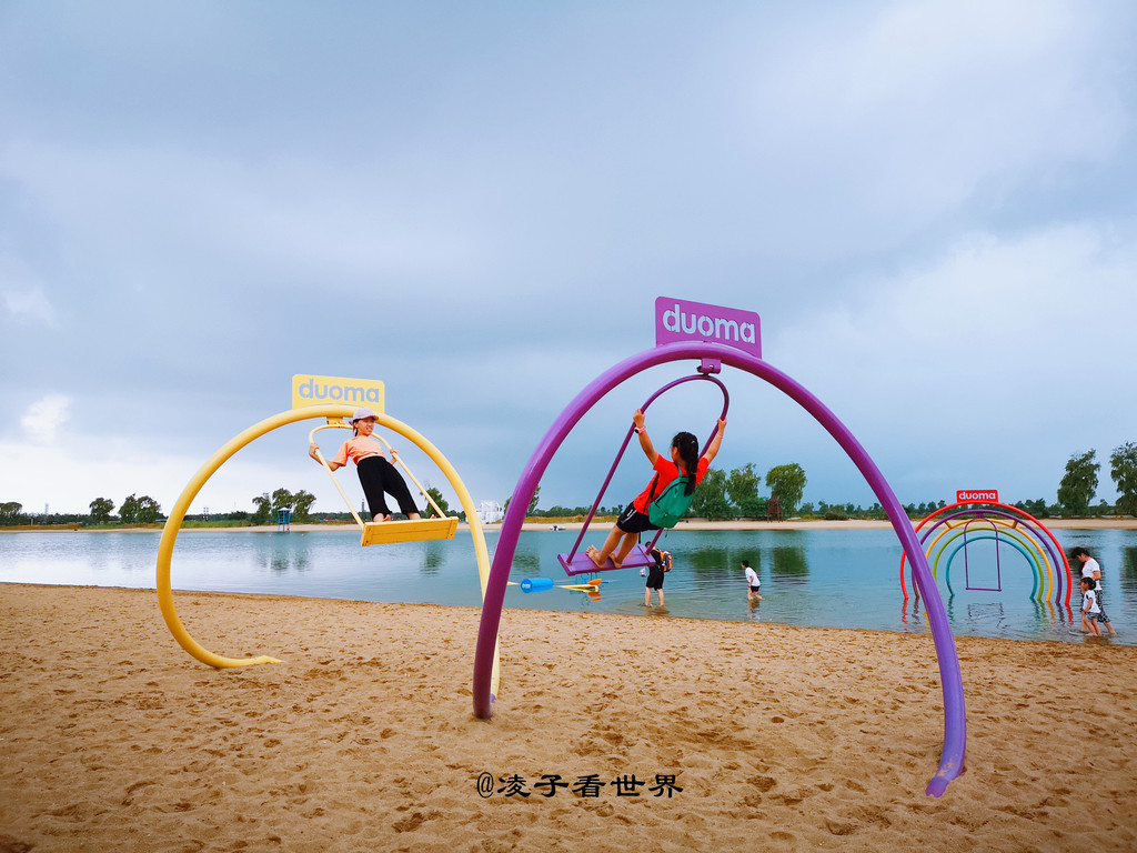 美好时光主题区:荡秋千就有很多种,水里的,沙滩上的,怎么玩都开心。