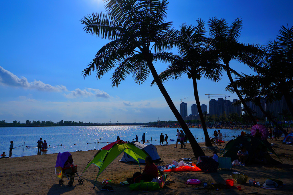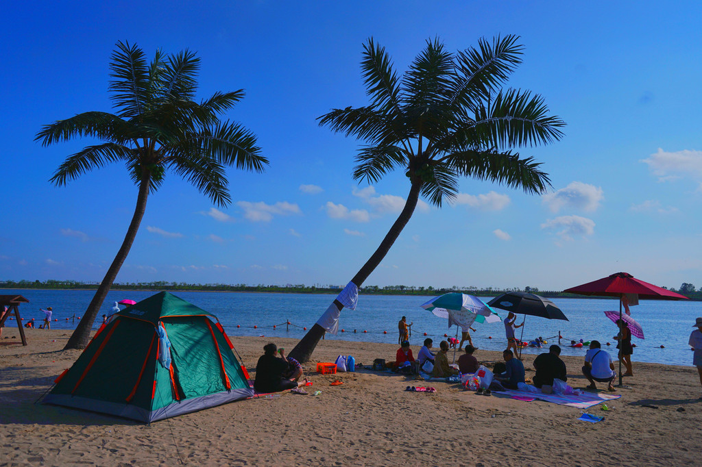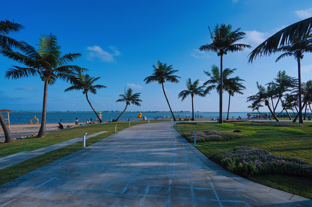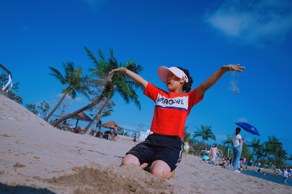 曹妃甸恒大御海天下的6.5公里黄金海岸线,碧海蓝天,海滩洁白细腻,椰树摇曳,海风送爽。孩子们在海边戏水,挖沙,玩得不亦乐乎,尽享这难得的夏日狂欢。