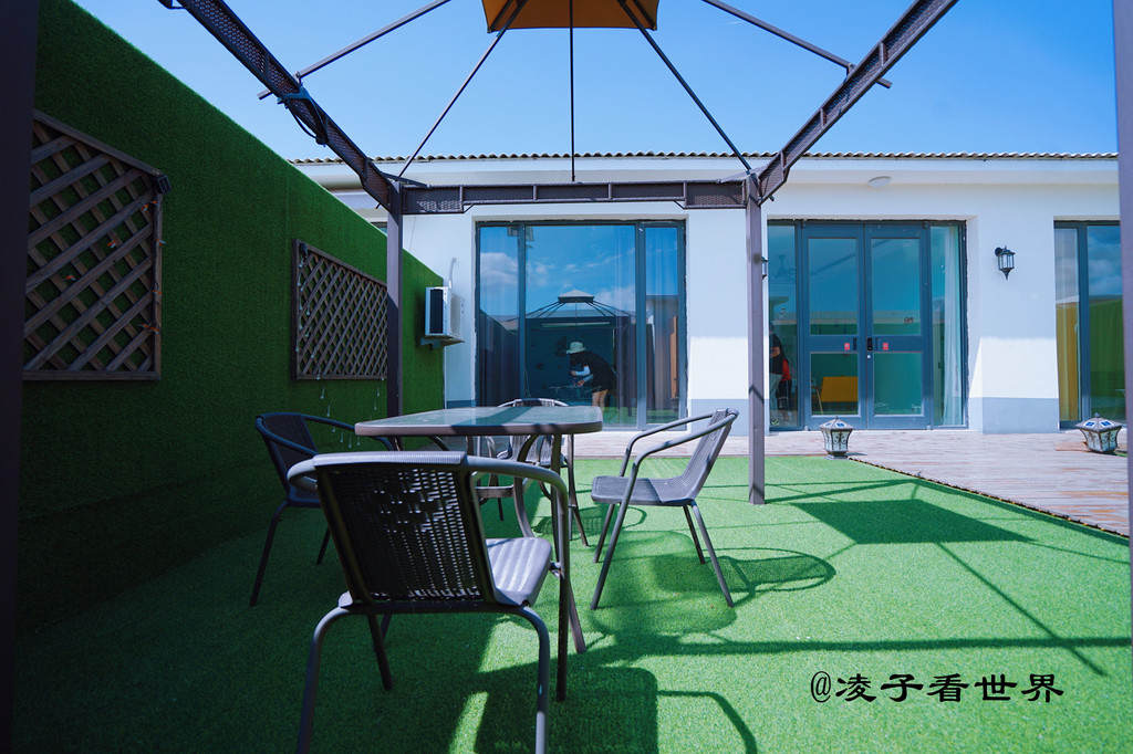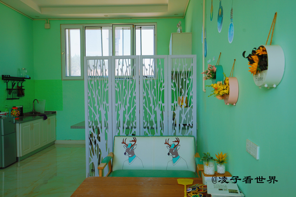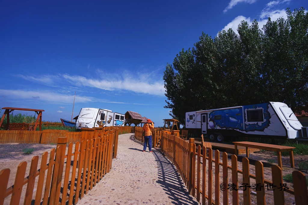 海边的房车,车身彩绘着蔚蓝的大海,林中的老旧渔船还真是拍美照的好地方,房车大而宽敞,一家三口住在里面刚好。