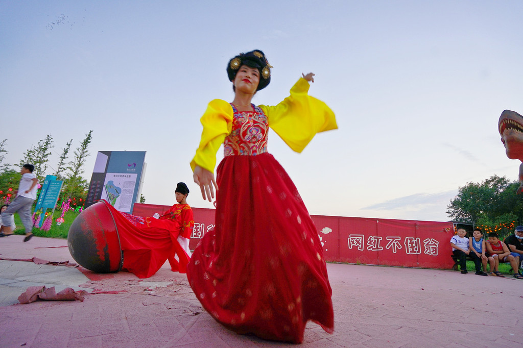 网红不倒翁小姐姐的表演很到位,一进来就能看到。