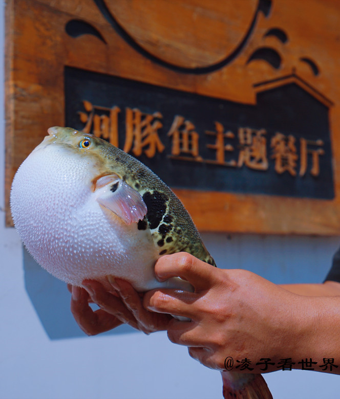 气鼓鼓的红鳍东方鲀,又叫虎河鲀,是十里海河豚小镇的当家花旦,不但产量高,个头大,肉质细腻而肥美。