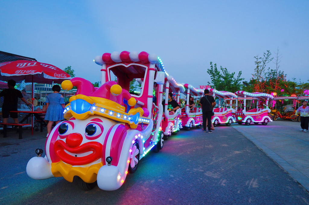 乐园还提供免费的自行车,走累了骑车兜兜风。乐园里的小火车,餐饮车都有,所以什么都不用担心,不想走路就坐车,到站下车尽情玩。
