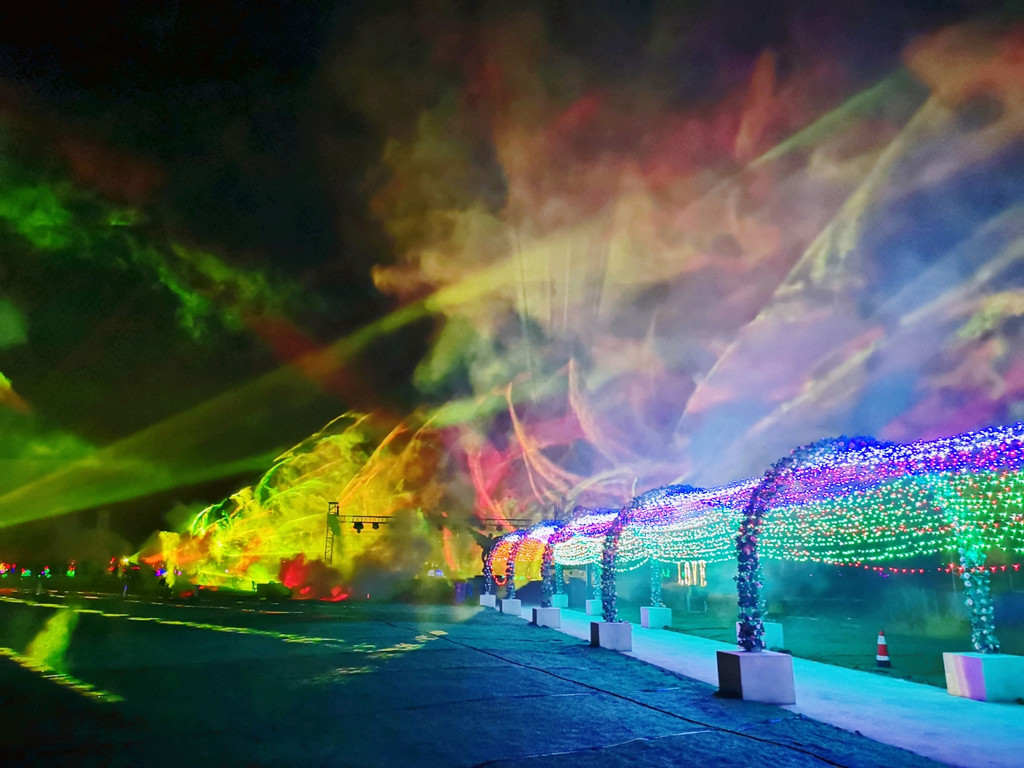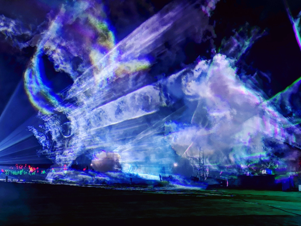 炫彩的激光与升腾的雾气营造出美妙的"云彩","晚霞"……变化无穷,唯美至极。