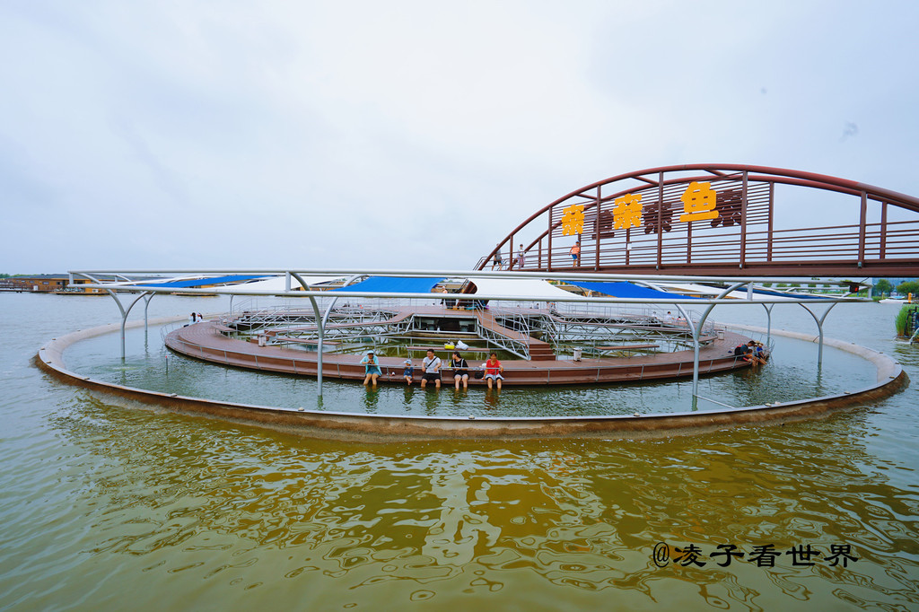 亲亲鱼:大型室外摩天轮鱼疗项目,坐在摩天轮上,把脚放入水中,摩天轮缓缓移动,鱼儿追逐围绕脚底,不停的啄食足底,达到按摩的效果。玩累了其它项目,就可以到这里来鱼疗,可以放松身心、消除疲劳。