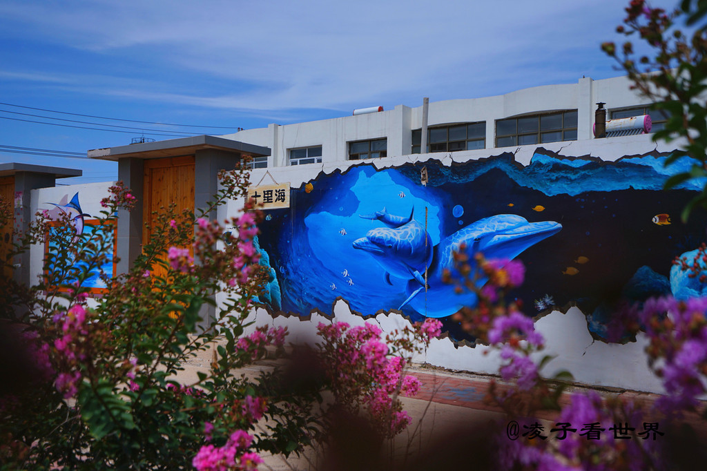 萌萌的,肥嘟嘟的小河豚矗立在村口,欢迎每一个都这里来的客人。墙壁上与河豚相关的立体彩绘也是惟妙惟肖,憨态可掬,楚楚动人。房前屋后的向阳花开得正美,小庭院中的蔬菜瓜果已经挂满枝头,引诱的孩子们总想去摘......