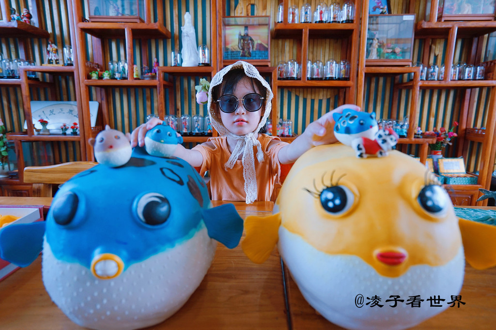 面塑体验馆的非遗传承人,用她灵巧的双手捏出了憨态可掬,活灵活现的河豚。每一个造型都是一件精品,作为伴手礼带回家,或者送人都是非常的有面。