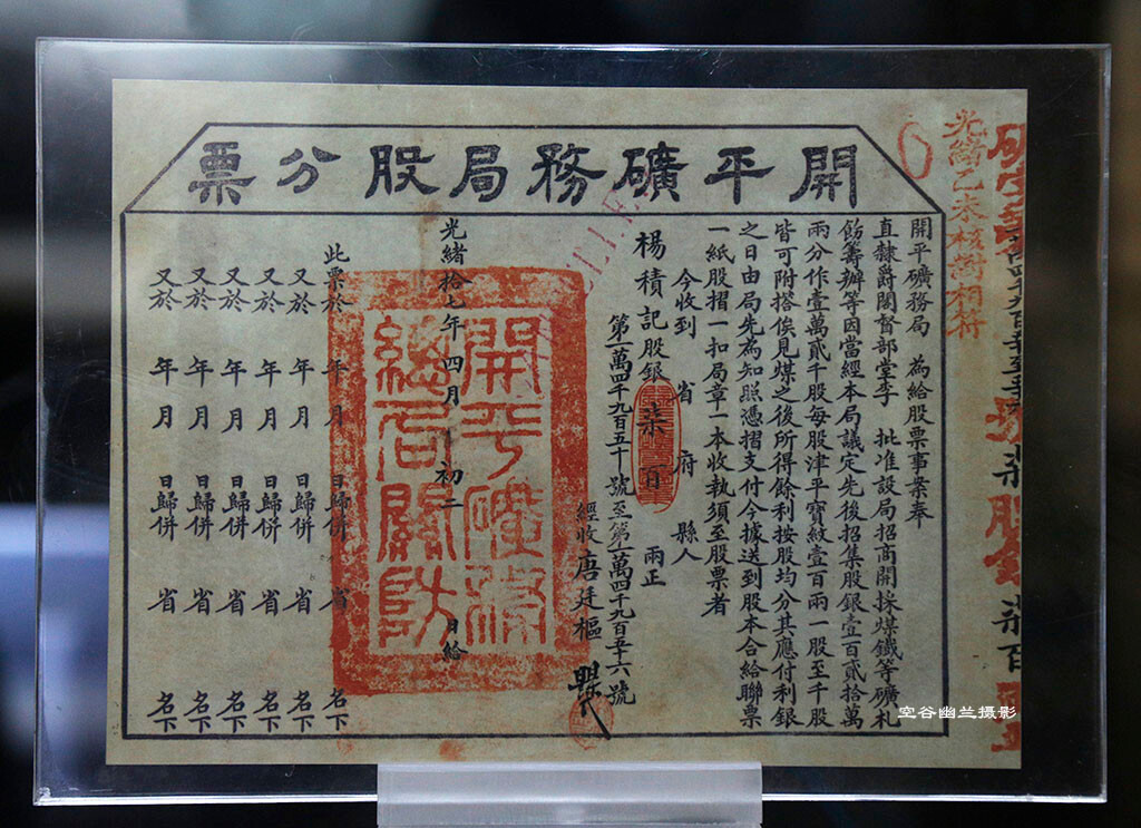 1876年,李鸿章命轮船招商局总办唐廷枢赴唐山开平一带勘探,发现此地蕴藏丰富矿产,质地优良。遂于次年开始筹办,制订章程,招商集股。1898年时煤炭产量达到73万吨,从此煤炭无需进口。