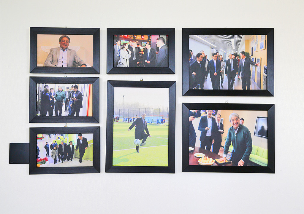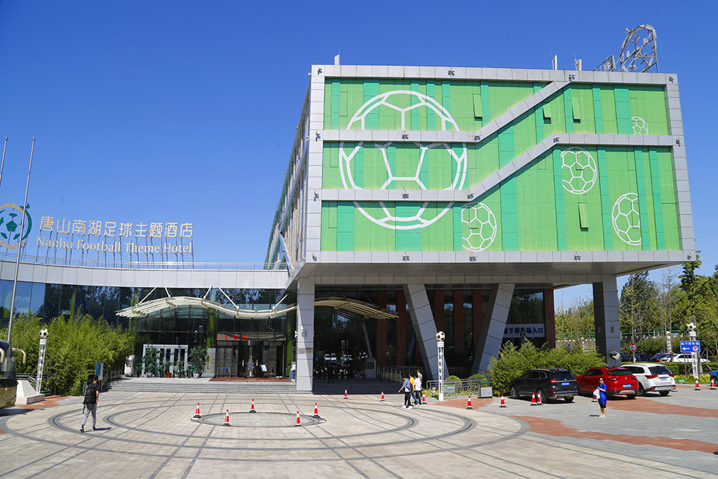 坐落在南湖边的足球酒店,是全国第一家足球酒店,也是球迷超喜欢的地方。从看到酒店上的足球标志,到门前的足球小子雕塑,大厅的台阶上摆放的足球,墙上展示的历届世界各国的足球比赛的精彩图片,橱柜里展示的球衣无一不让球迷驻足观看。