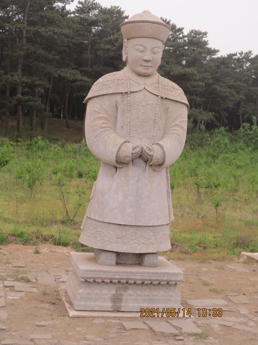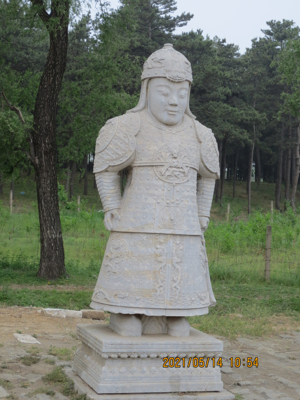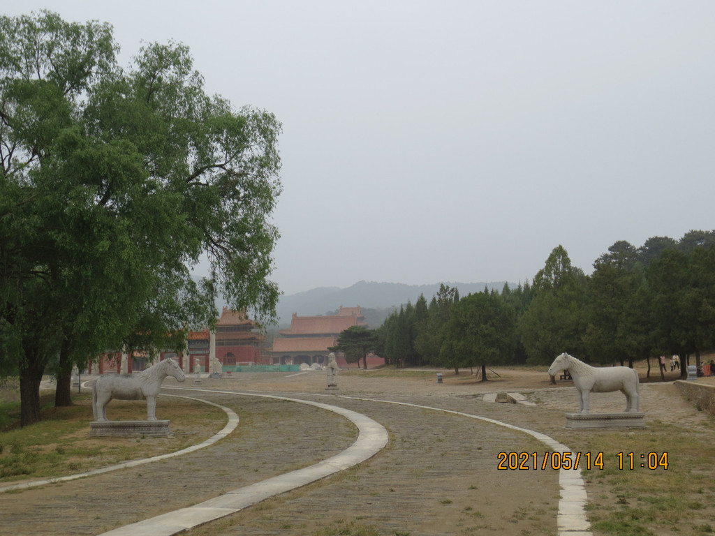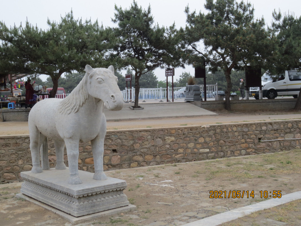 景陵神道石像生,围栏的地方是景交车和社会车辆停车场。