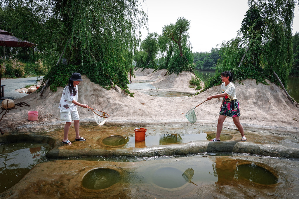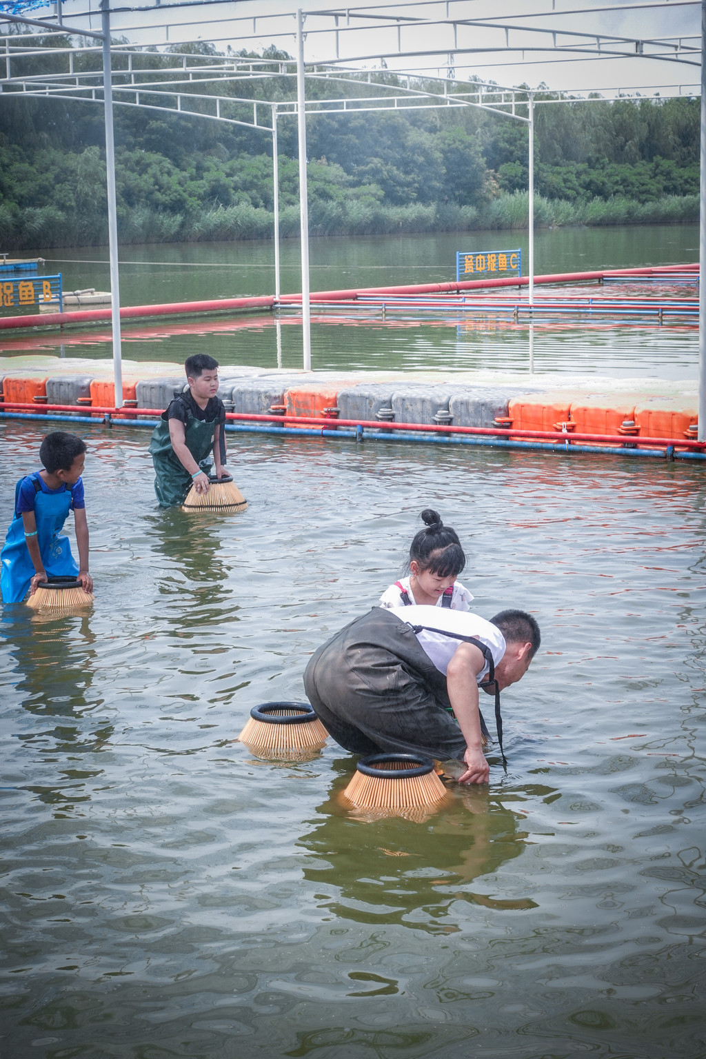 翁中捉鱼是一种古老的捕鱼方式,俗称“罩鱼”,简单易行且富有趣味,这是一项非常适宜群体游玩的项目,如果三五个人合力将鱼逼到角落,或是围成一圈把鱼堵在圈中,罩鱼就变得更加简单了,齐心协力抓到鱼后的快乐也会大大增加。