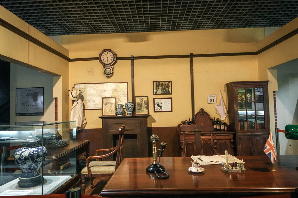 陈列着一组组旧时遗留下的银制餐具、有刀叉、杯子等,还有打蛋器、酒摇这样的器皿,生活用品小摆件钟表、滚筒式留声机、电风扇。从民间收集了许许多多不同国家、不同历史时期曾经使用过的井下照明矿灯,错落有致的挂在橱窗中。