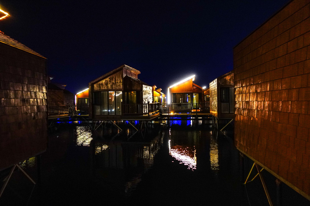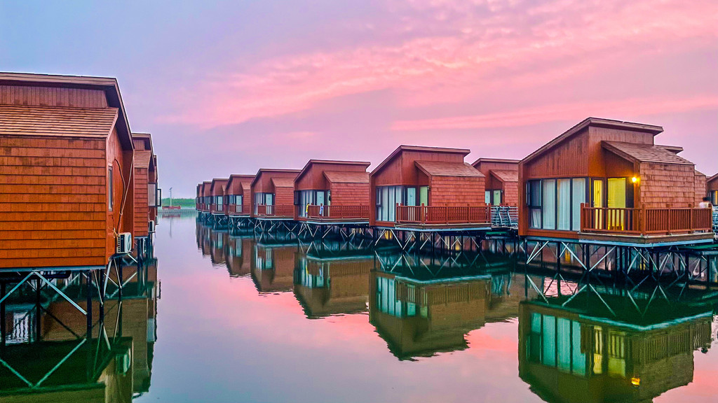 一座座充满异国风情,人字形的屋顶,风格迥异的水上小木屋,色彩斑斓、静静的矗立在海岛之上。四周环海,利用得天独厚的地理位置,让每一间房打开窗、推开门就能拥抱自然,享受难得的悠闲与惬意。