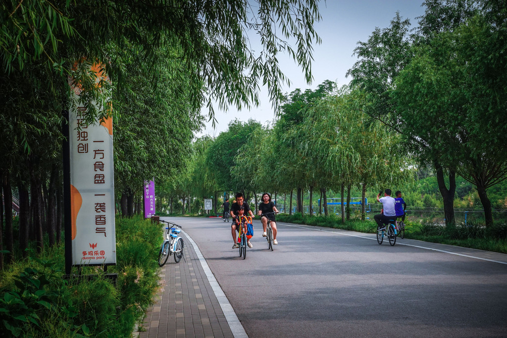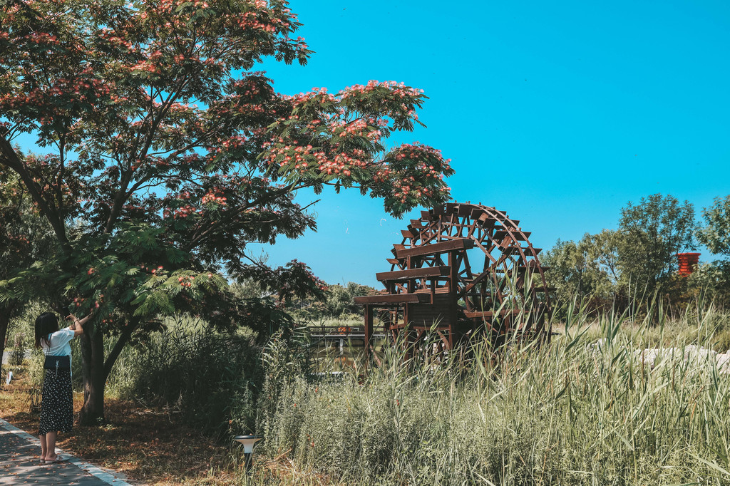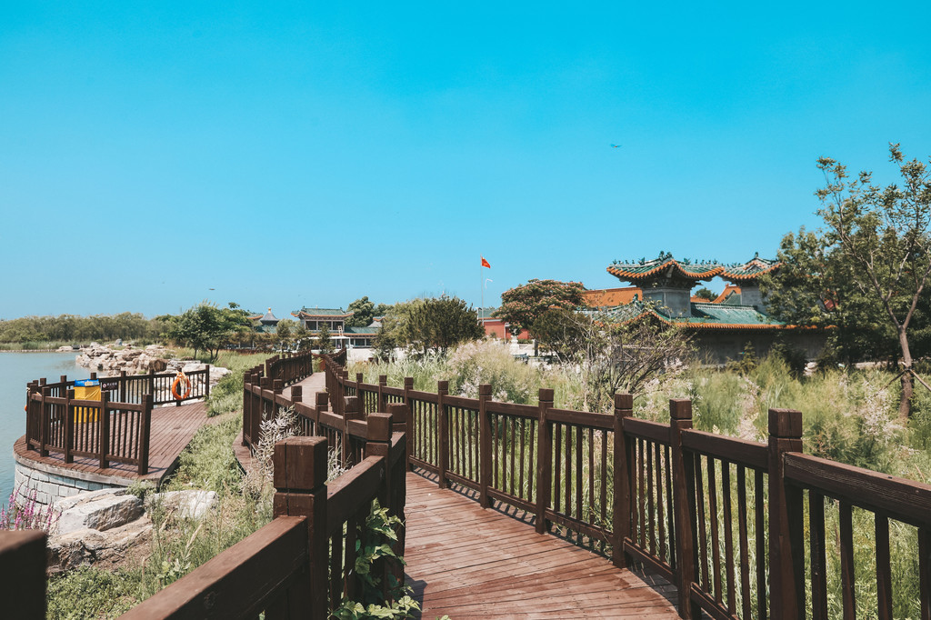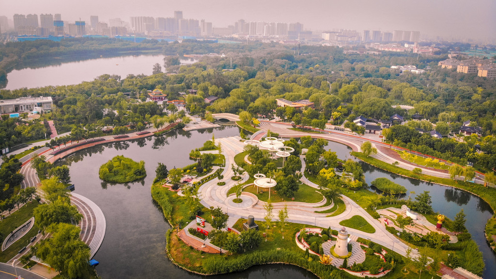 碧波荡漾的湖水,生机盎然的绿色,雕梁画柱的亭台楼阁,恍然间,不知是否闯入了江南,曼妙多姿的水乡情怀在眼前蔓延开来。因采煤塌陷、垃圾成山,这里曾一度荒废,多年的规划与治理,我眼前的它好似一位亭亭玉立的少女,经过凤凰涅槃的洗礼重获新生,成为如今城市氧吧。