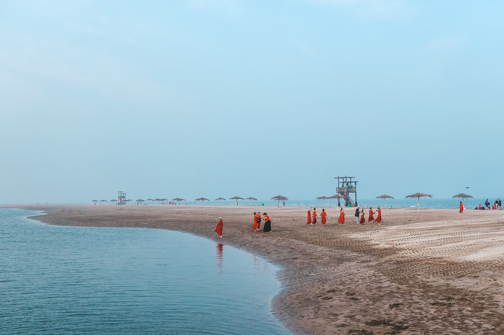 一花一世界,一树一菩提,在唐山湾旅游岛里,还有一个佛教圣地:菩提岛,与月坨岛的风格迥然不同,菩提岛内钟鼓相对,天王殿坐落于其中,后面的大雄宝殿前参天的古树,遮风挡雨,守候菩提岛,岛上很近,从月坨岛在码头乘坐游船抵达菩提岛,最喜欢清晨时候的菩提岛,踏浪拾贝,惬意而舒适。