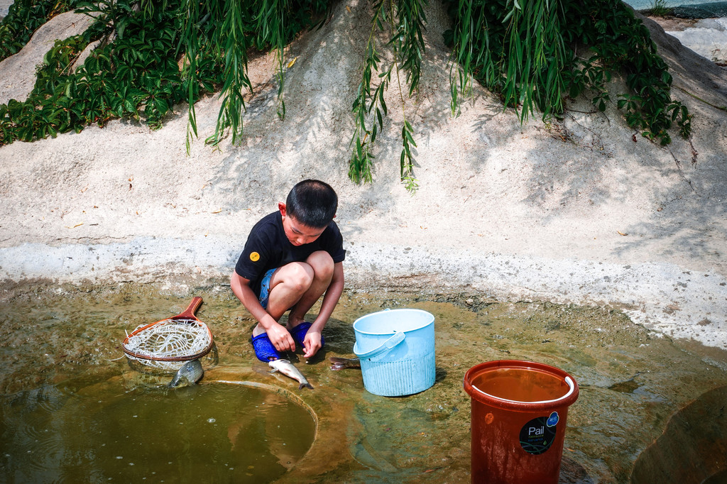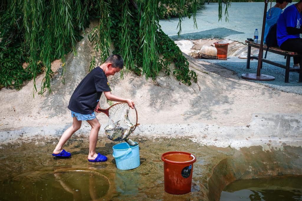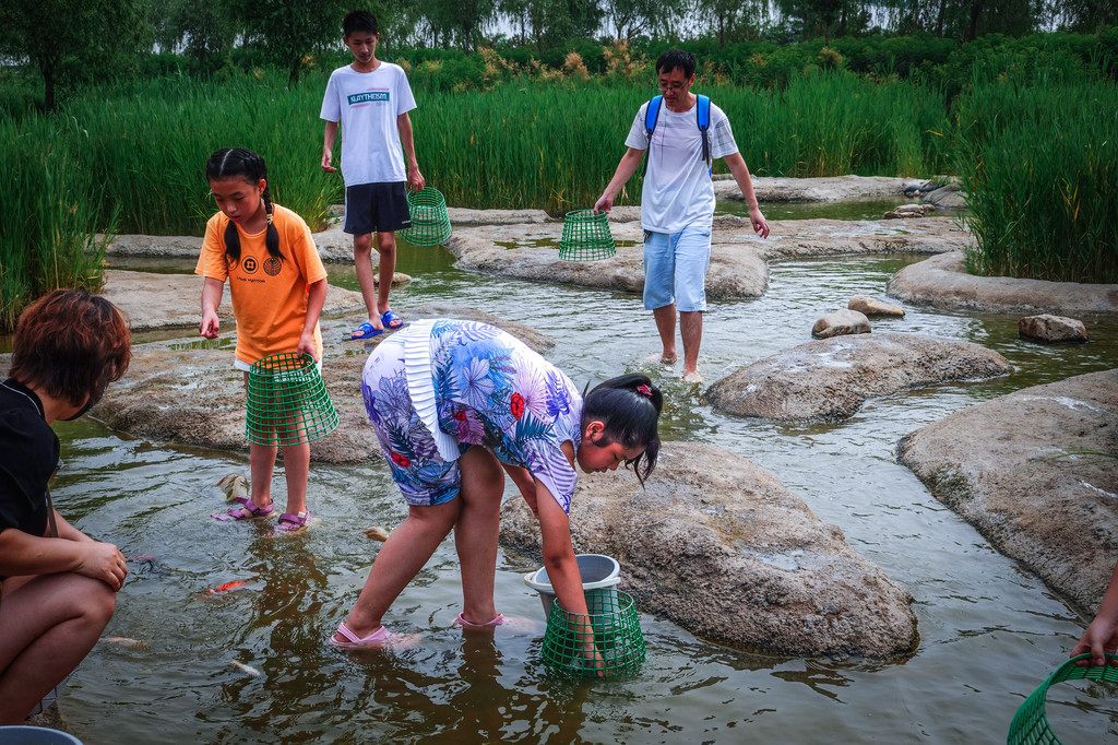 多玛乐园为游客提供了各种淘水工具,包括双人淘鱼篓、小水舀、虹吸管、水枪等,你可以挽起裤管、光着脚丫,踏进水中,感受鱼儿撞击脚面,观看鱼儿因缺氧而跳出水面的身姿,当水干鱼现,用手抄网或水舀将鱼捞金鱼篓,绝对让你收获满满。