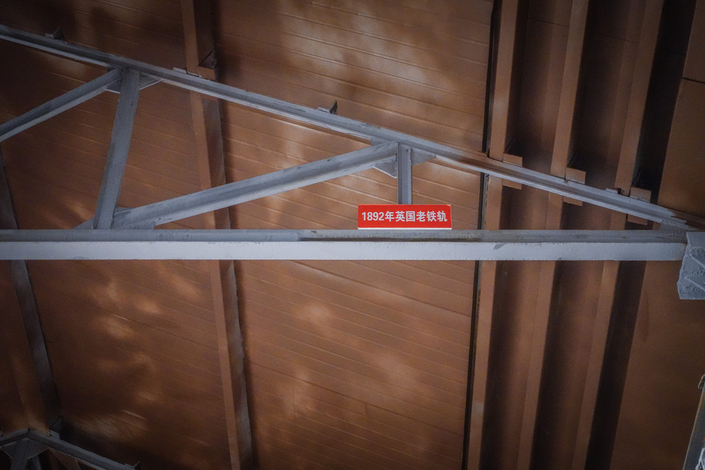 第一条准轨铁路老铁轨,当年从英国进口的标准轨铁路铁轨;