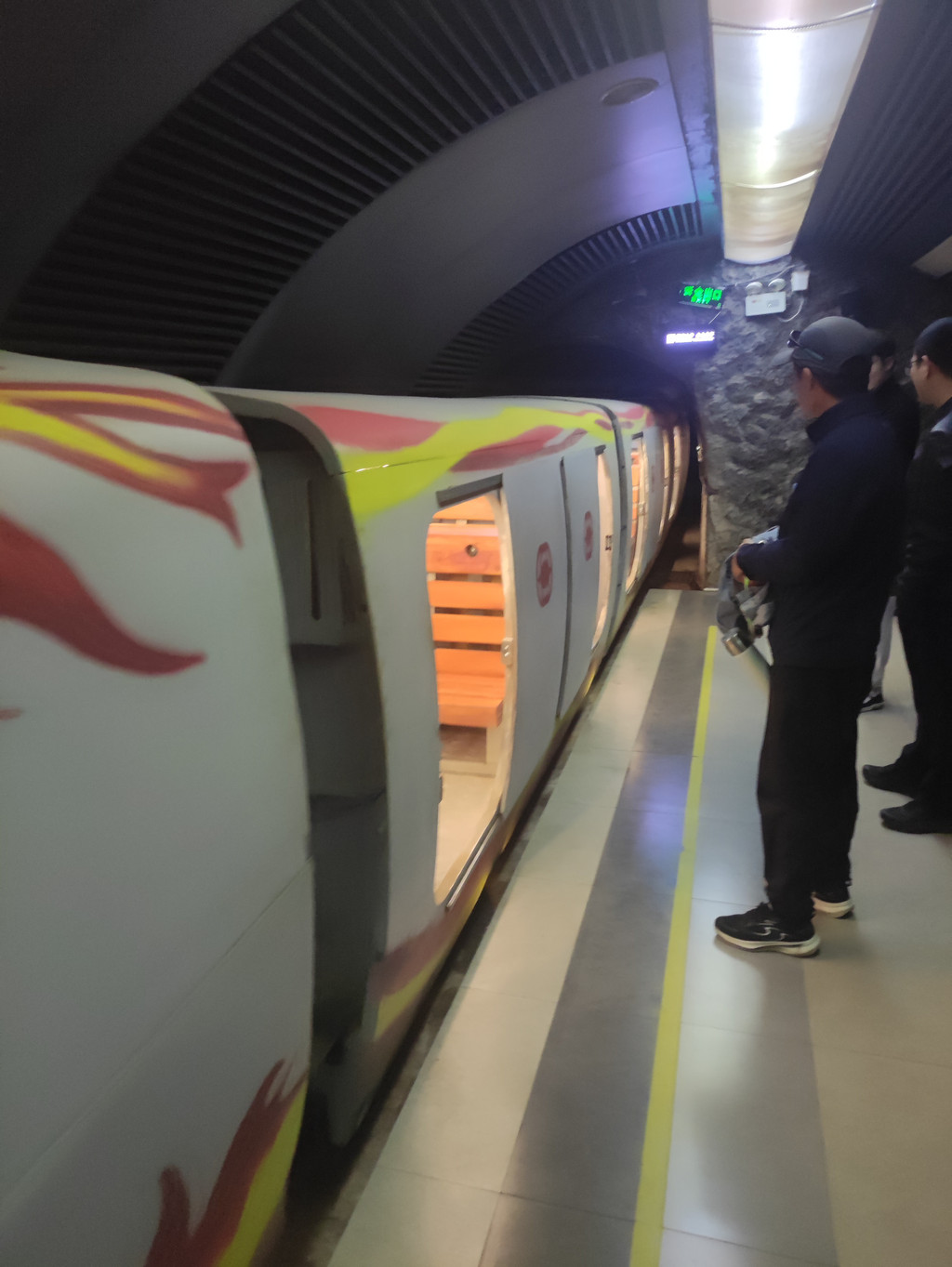 井下小火车,乘坐小火车回程慢慢就到上面了。