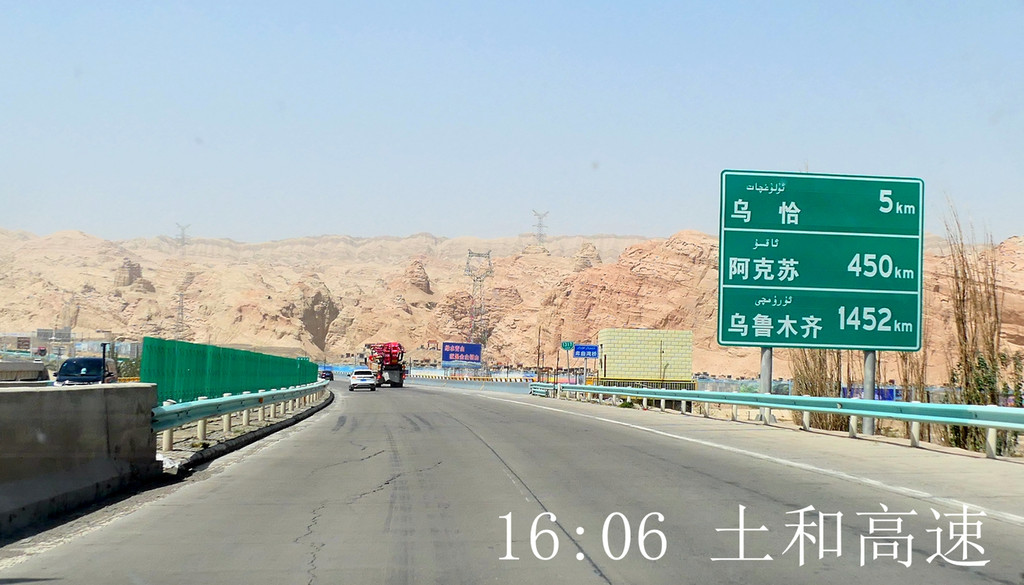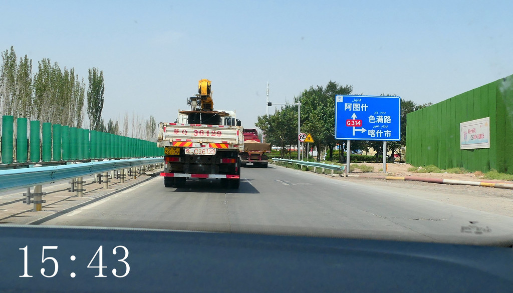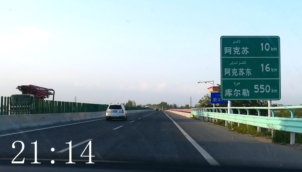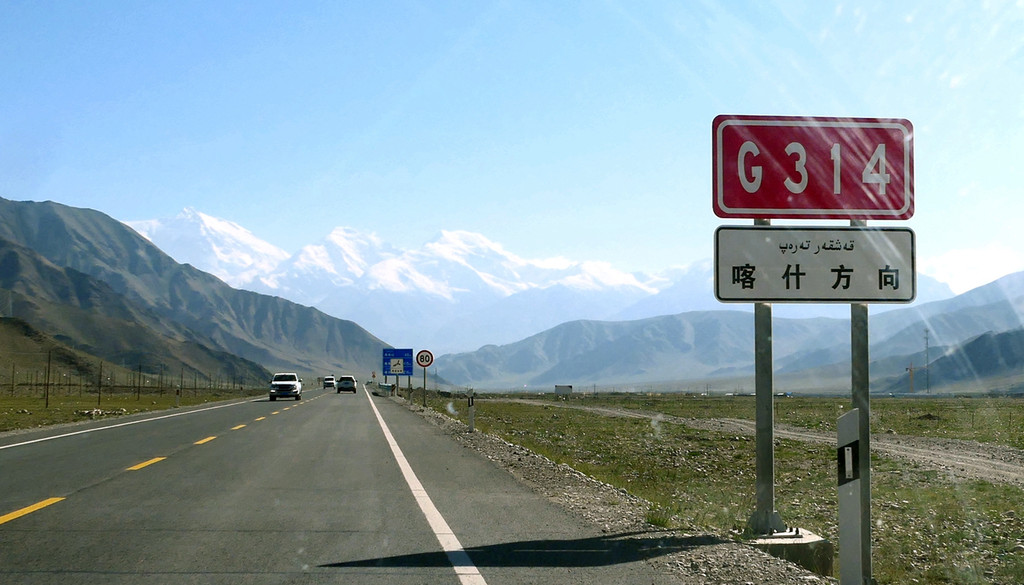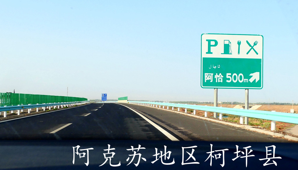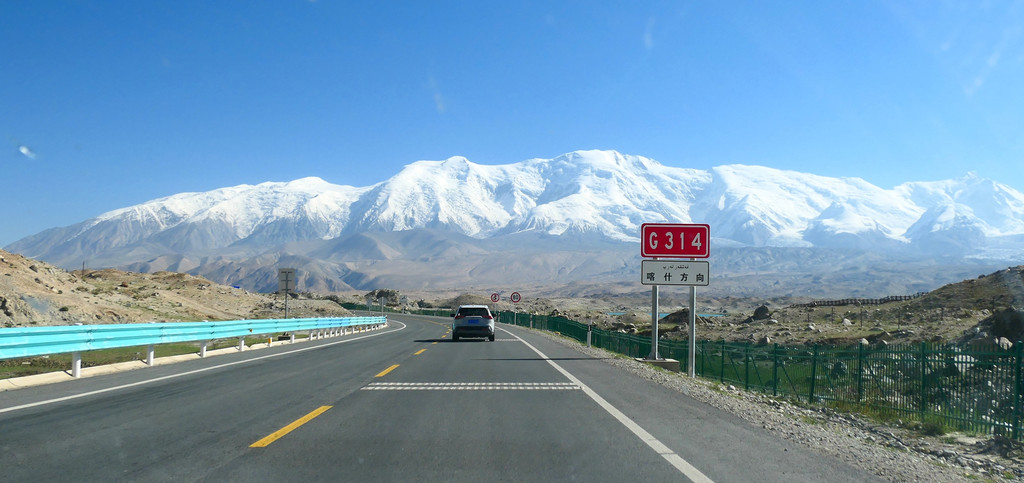14:20再度启程,直奔阿克苏,全程540公里,仅算开车时间就需6.5小时。为确保能在天黑之前赶抵阿克苏,我们决定,此后除进入服务区稍事休息外,中途就不再做任何逗留。G314绕行喀什西侧,16:04经“喀什北”收费站上土和高速,此地距离阿克苏还有450公里。