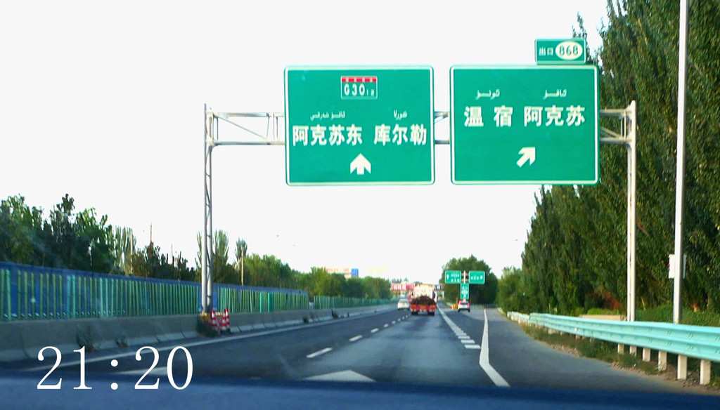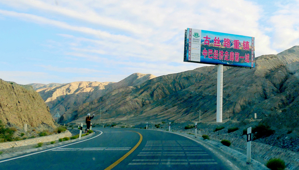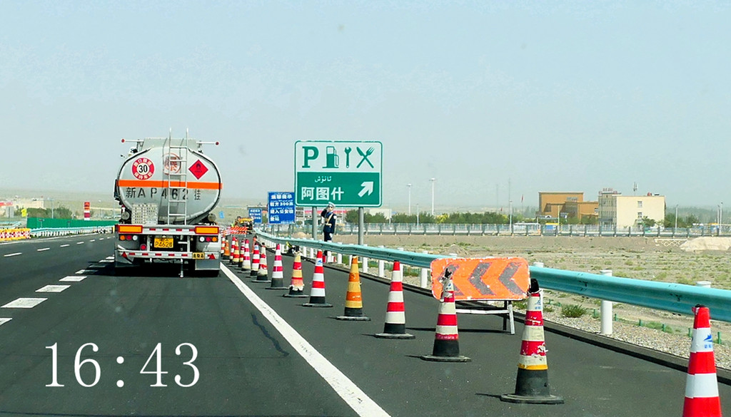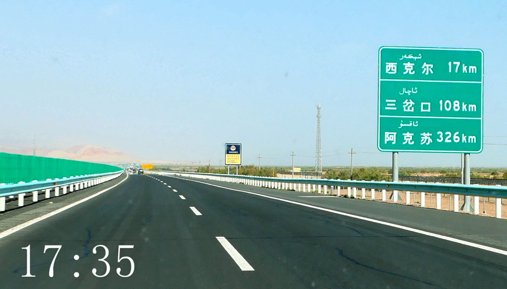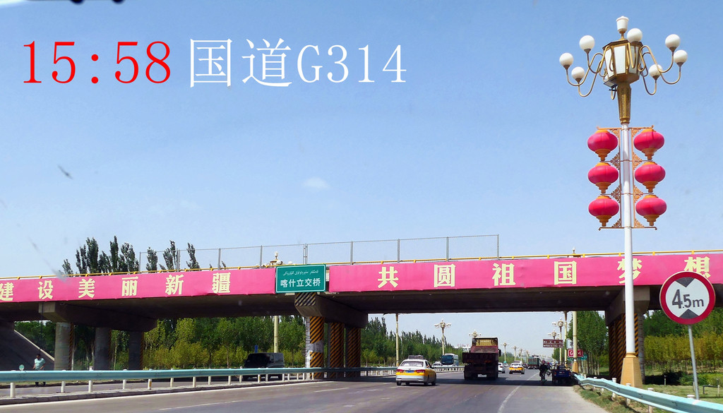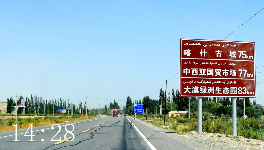 14:20再度启程,直奔阿克苏,全程540公里,仅算开车时间就需6.5小时。为确保能在天黑之前赶抵阿克苏,我们决定,此后除进入服务区稍事休息外,中途就不再做任何逗留。G314绕行喀什西侧,16:04经“喀什北”收费站上土和高速,此地距离阿克苏还有450公里。