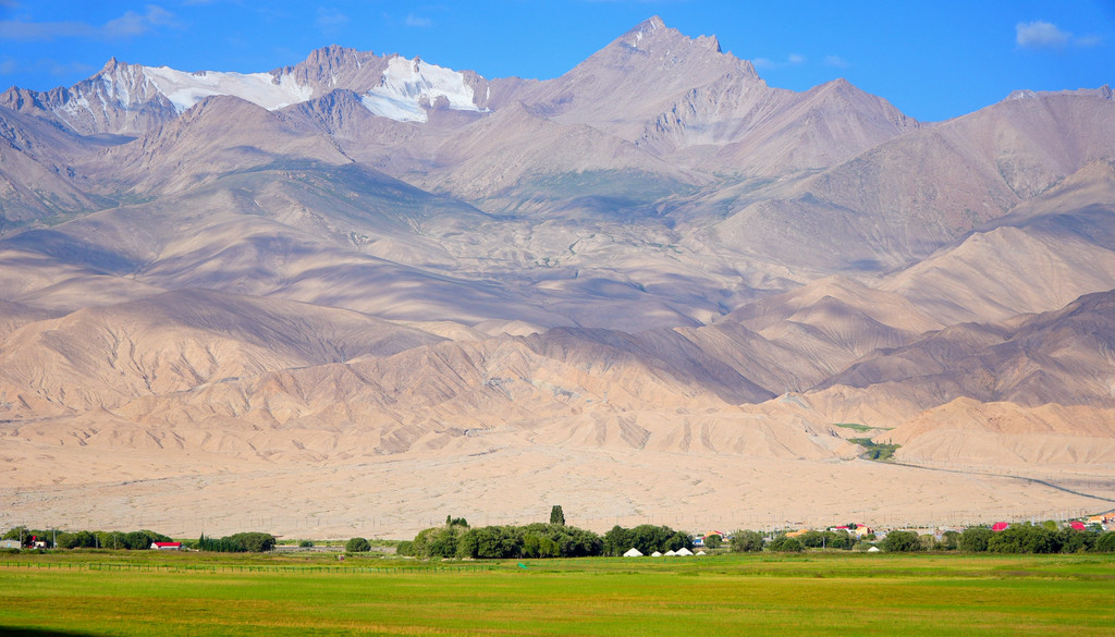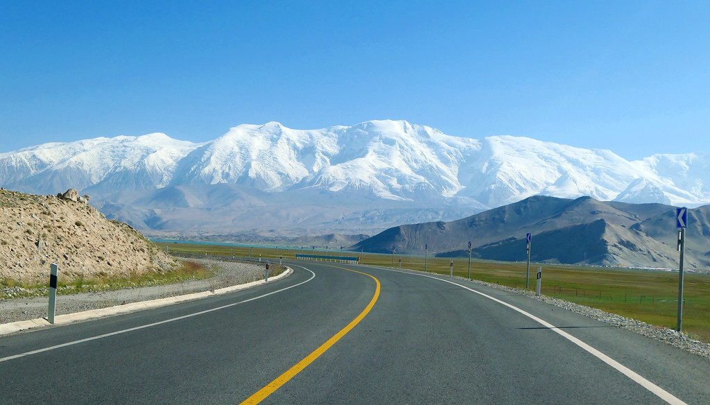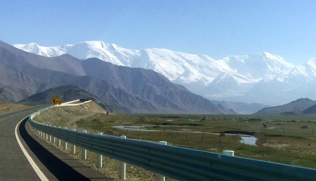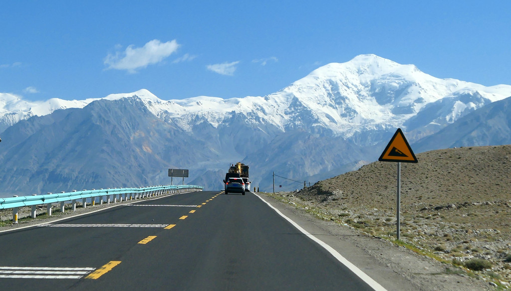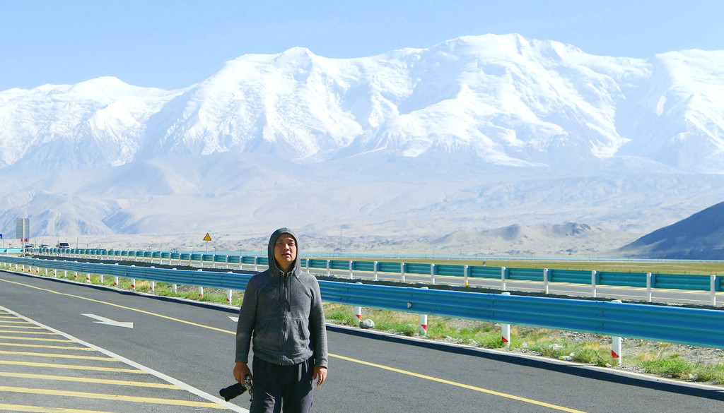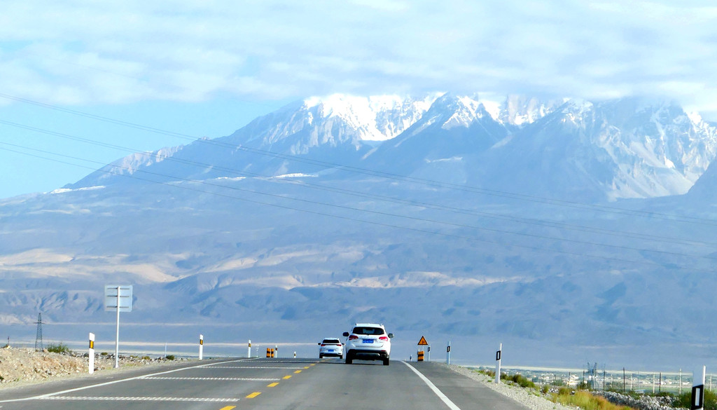 继续朝向昆仑山脉的雪峰行驶。两天前,我们从喀什出发,自北向南抵达塔县;如今则是沿着同一条路,从塔县启程,由南向北返回喀什。虽说是原路往返,但坐在副驾驶位的我,却是看到了截然不同的风景。来时,主要是孤峰耸立的慕士塔格雪山一路引入眼帘;归程中,连绵起伏的公格尔雪山又成了视野中的主角。