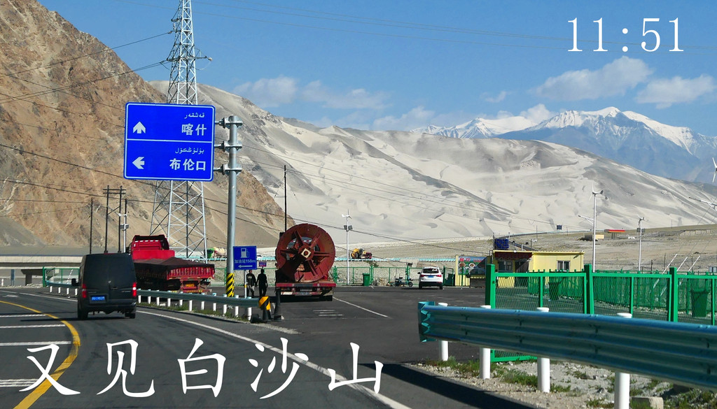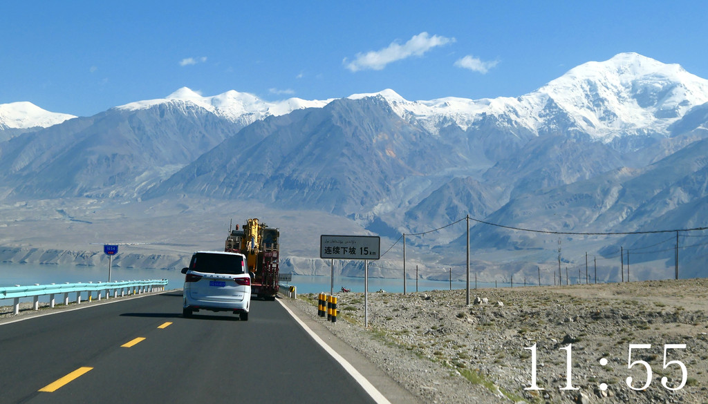 沿国道G314继续向喀什行驶,公格尔雪山也依旧是横亘在我们前方。康西瓦河在公路的右侧伴随我们前行,它源自慕士塔格雪山,注入白山湖。11:51又见白沙湖与白沙山。