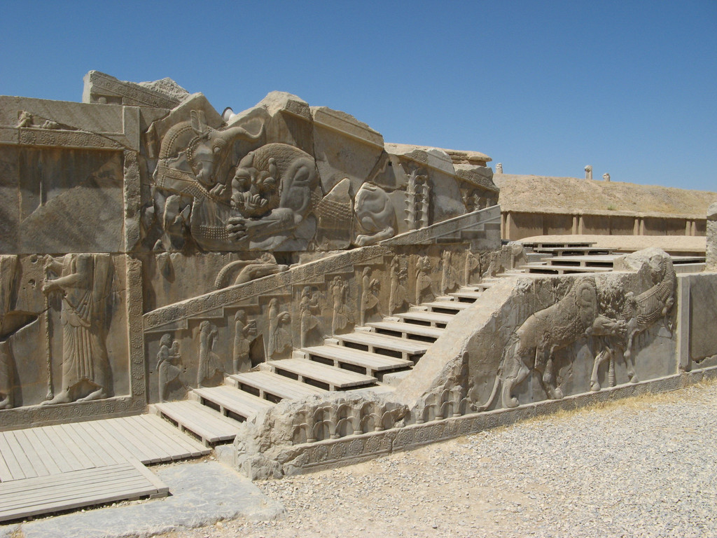总算撑到了下一站,古都设拉子。回到了适合人类居住的环境。除了城内一些景点,比如倾斜的卡里姆古堡之塔,灯王之墓,最要紧的是,参观举世闻名的居鲁士寝陵Pasargadae,和波斯帝国遗迹Persepolis。其间还夹着Rostam浮雕及墓穴。日晒雨淋了两千年,换代了数十次,依然不失宏伟及细腻,实在令人难以置信。稍逊风骚的是,距此不远的拜火教圣城雅兹徳。除了精致的广场,还有“吸风塔”颇为引人入胜。